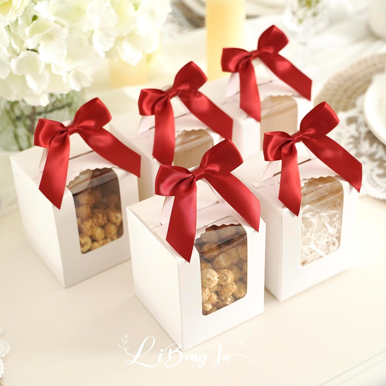 3.5" Red Bow Satin Pre-Tied Bows for Gift Wrapping, Small Bows for Crafts, Premade Bows, Candy Apple Bows, Twist Tie Bows for Cake Decorating, Party Favor, Wedding Decoration-36 Counts