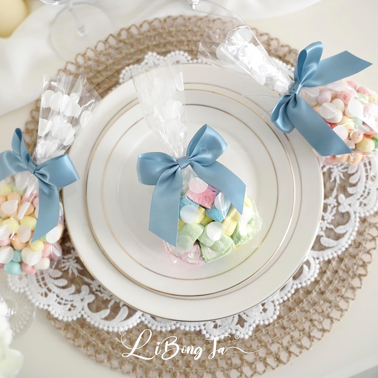 3.5" Dusty Blue Bow Satin Pre-Tied Bows for Gift Wrapping, Small Bows for Crafts, Premade Bows, Candy Apple Bows, Twist Tie Bows for Cake Decorating, Party Favor, Wedding Decoration-36 Counts
