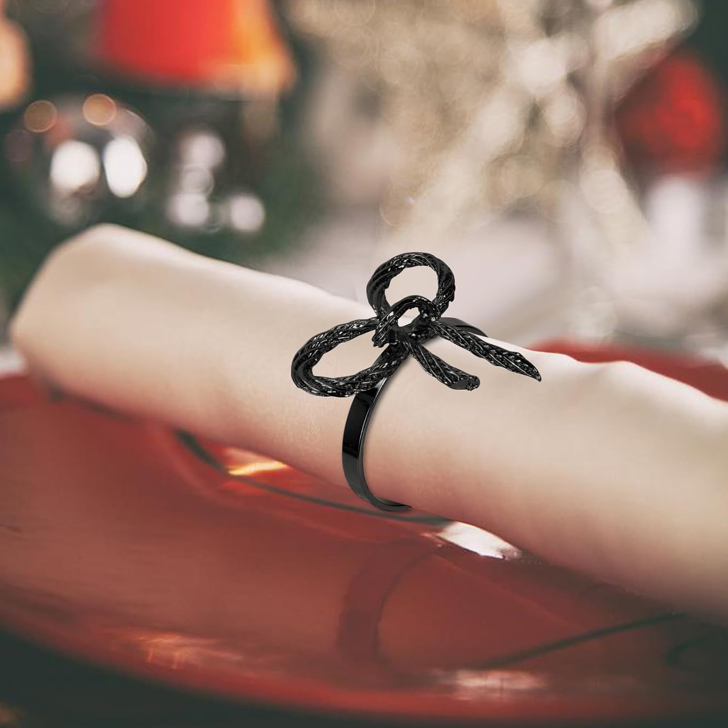 • Durable Material: These black napkin rings are made of quality alloy, the metal napkin rings are durable and reusable, The cute bowknot design looks exquisite,and the shiny gold finish is not easy to fade, can ornament your table and bring a lot of compliments from your customer.