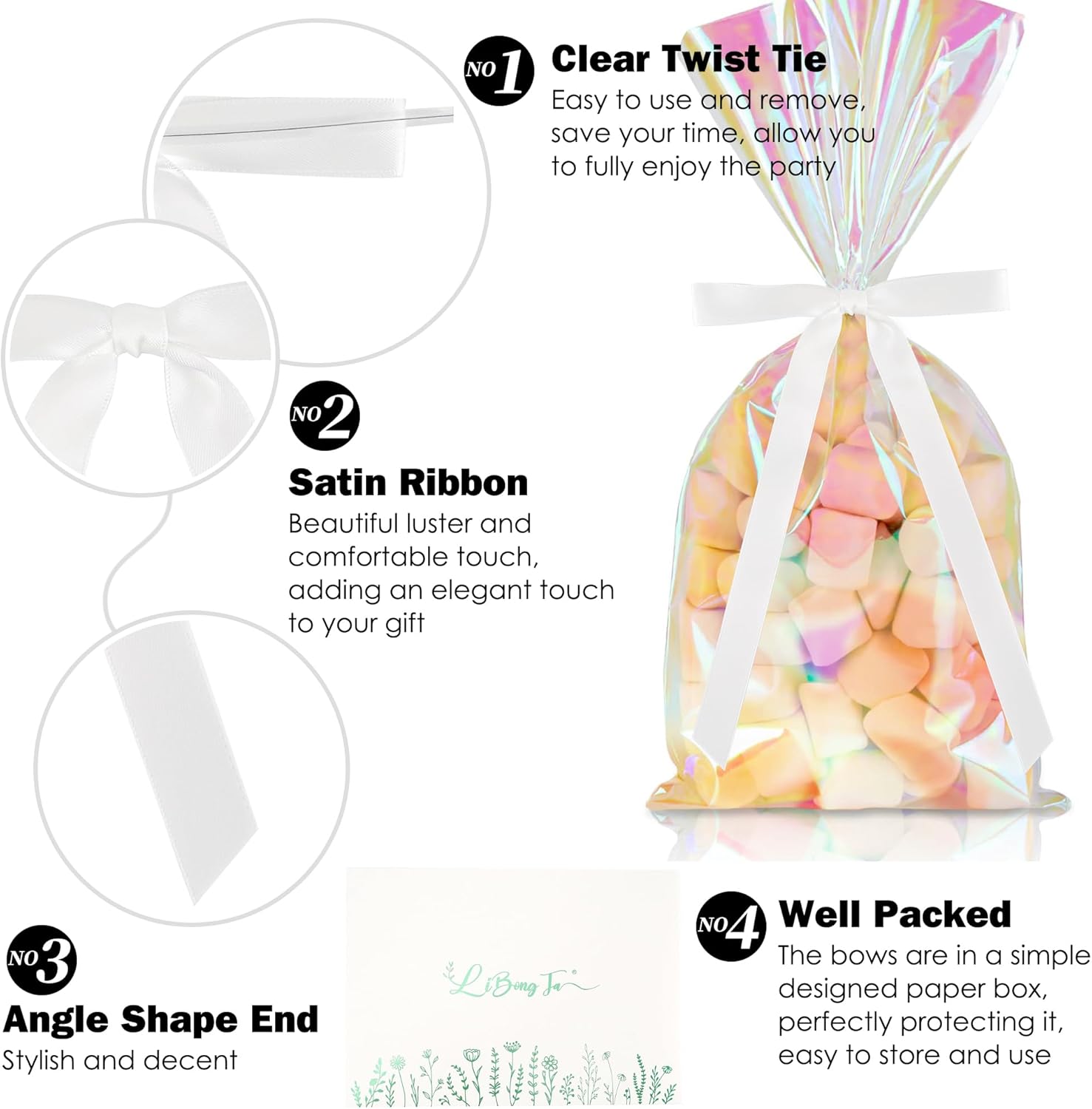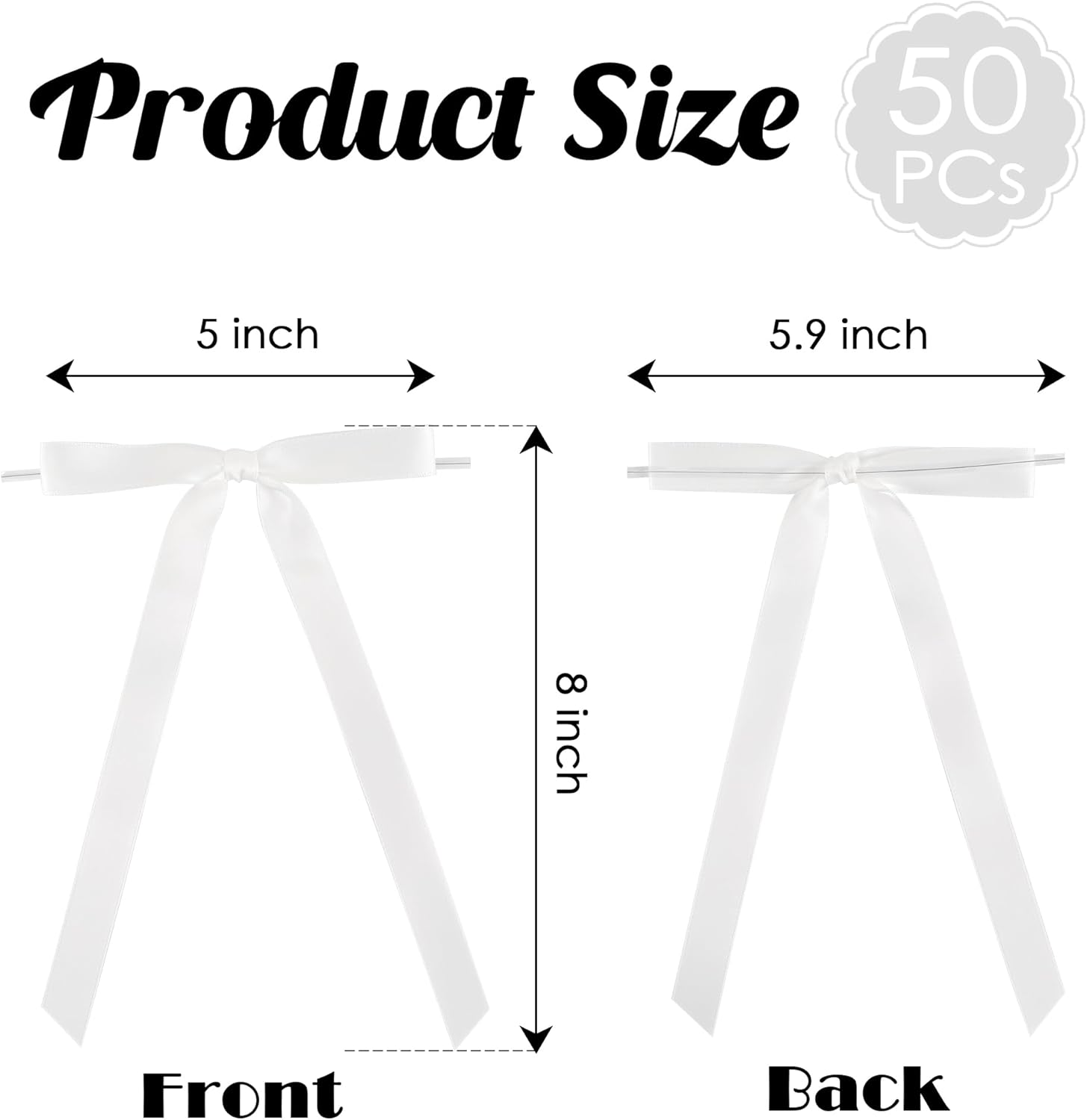 50 PCs White Bow 5 Inch Long Tail Bows for Gift Wrapping, Easter Bow Party Decorations, Twist Tie Bows, Satin Bows for Crafts, Premade Bows for Presents, Treat Bags, Bottles, Cakes