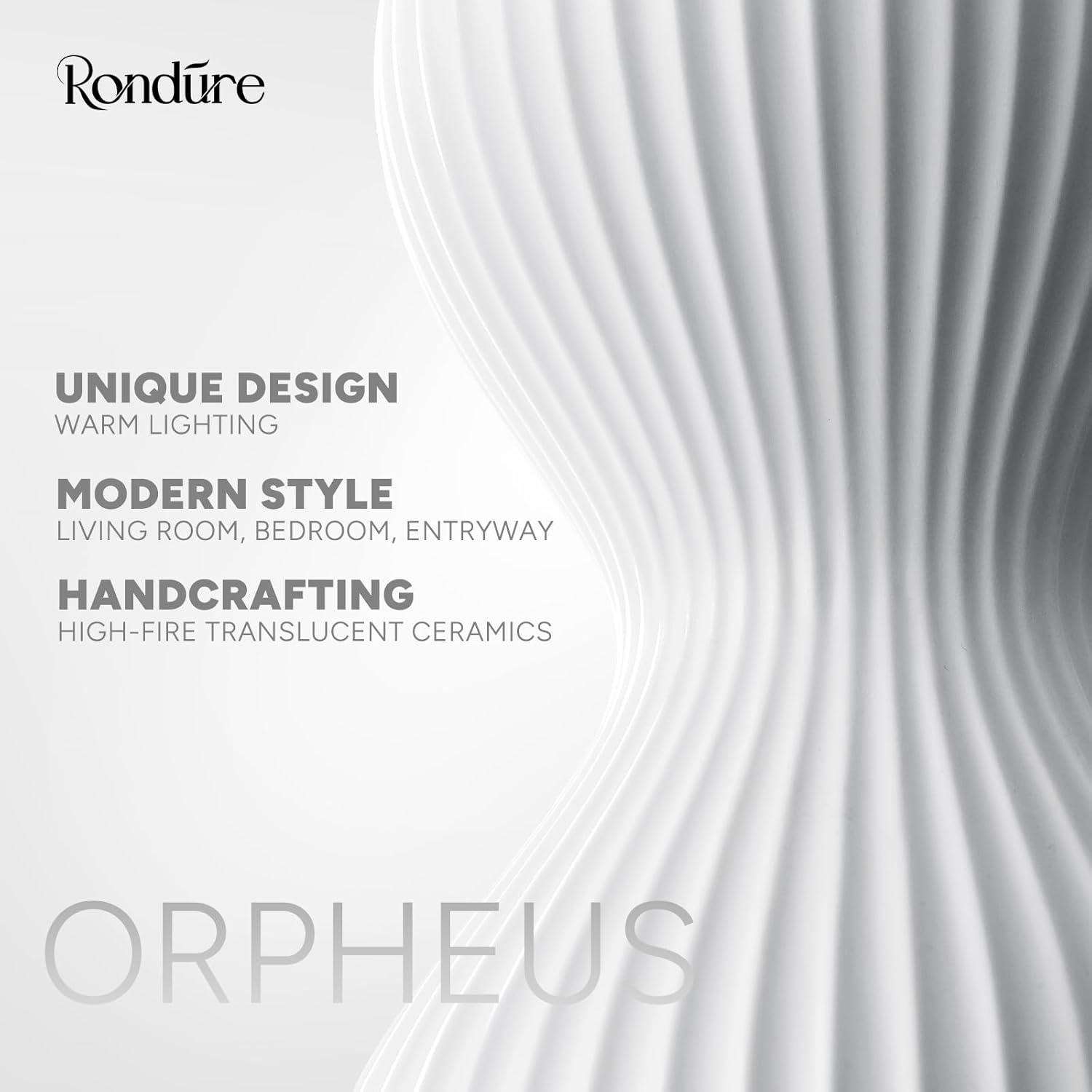 RONDURE 15.8" Modern Ceramic Table Lamp, Modern Bedside Lamps for Bedroom, Living Room and Nightstand, White Translucent Ceramic Shade, Warm Ambient Lighting, Home Decor