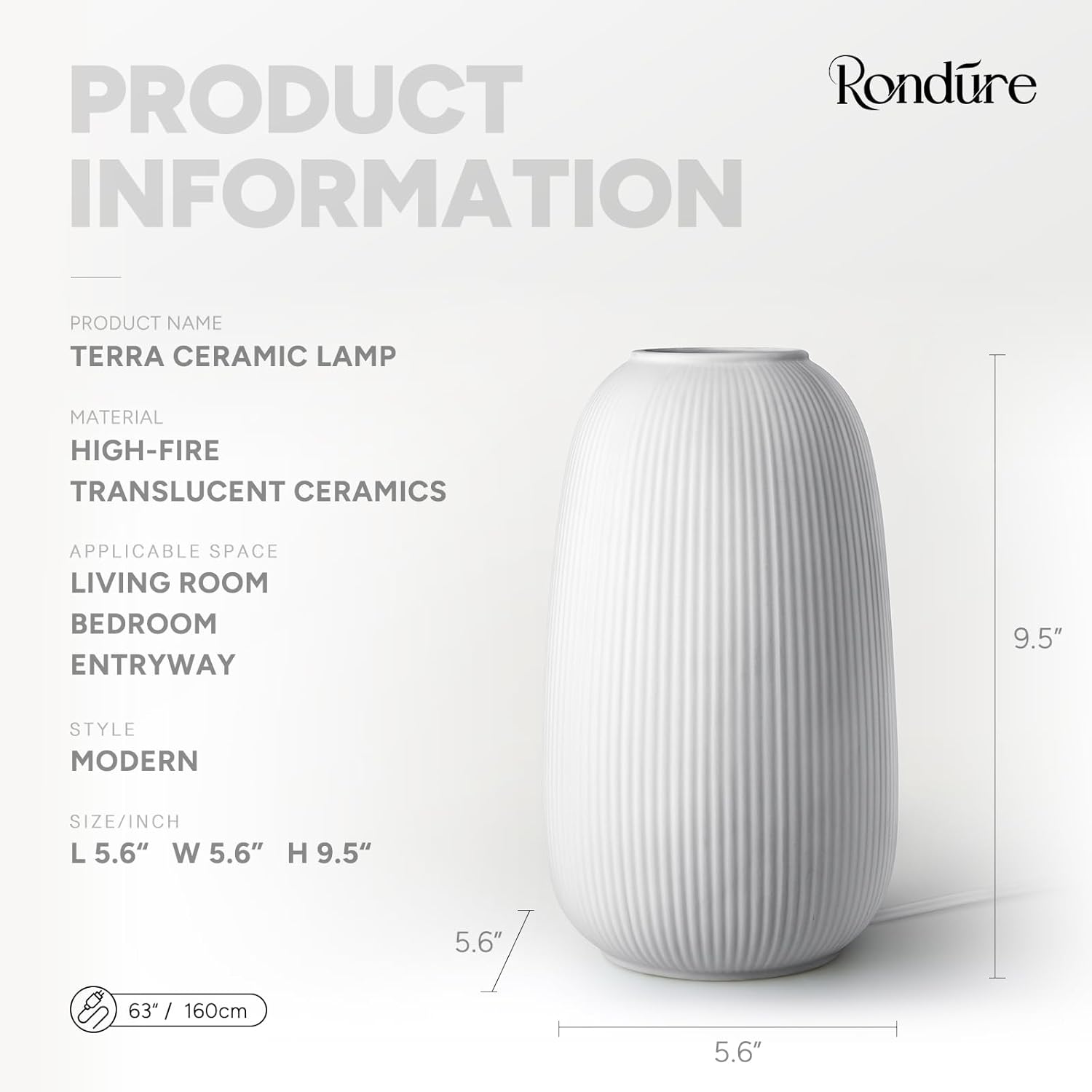 RONDURE 9.5" Modern Ceramic Table Lamp, Modern Bedside Lamps for Bedroom, Living Room and Nightstand, White Translucent Ceramic Shade, Warm Ambient Lighting, Home Decor