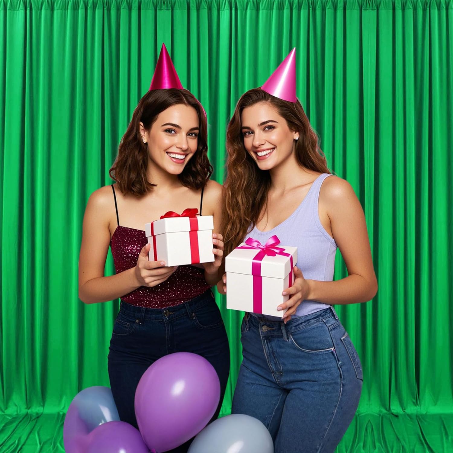 10ft x 10ft Grass Green Backdrop Curtains for Parties, Fabric Satin Background Curtain with Rod Pockets for Weddings, Birthday, Baby Shower, Photography, Graduation Party Backdrop Drapes, 2 Panels