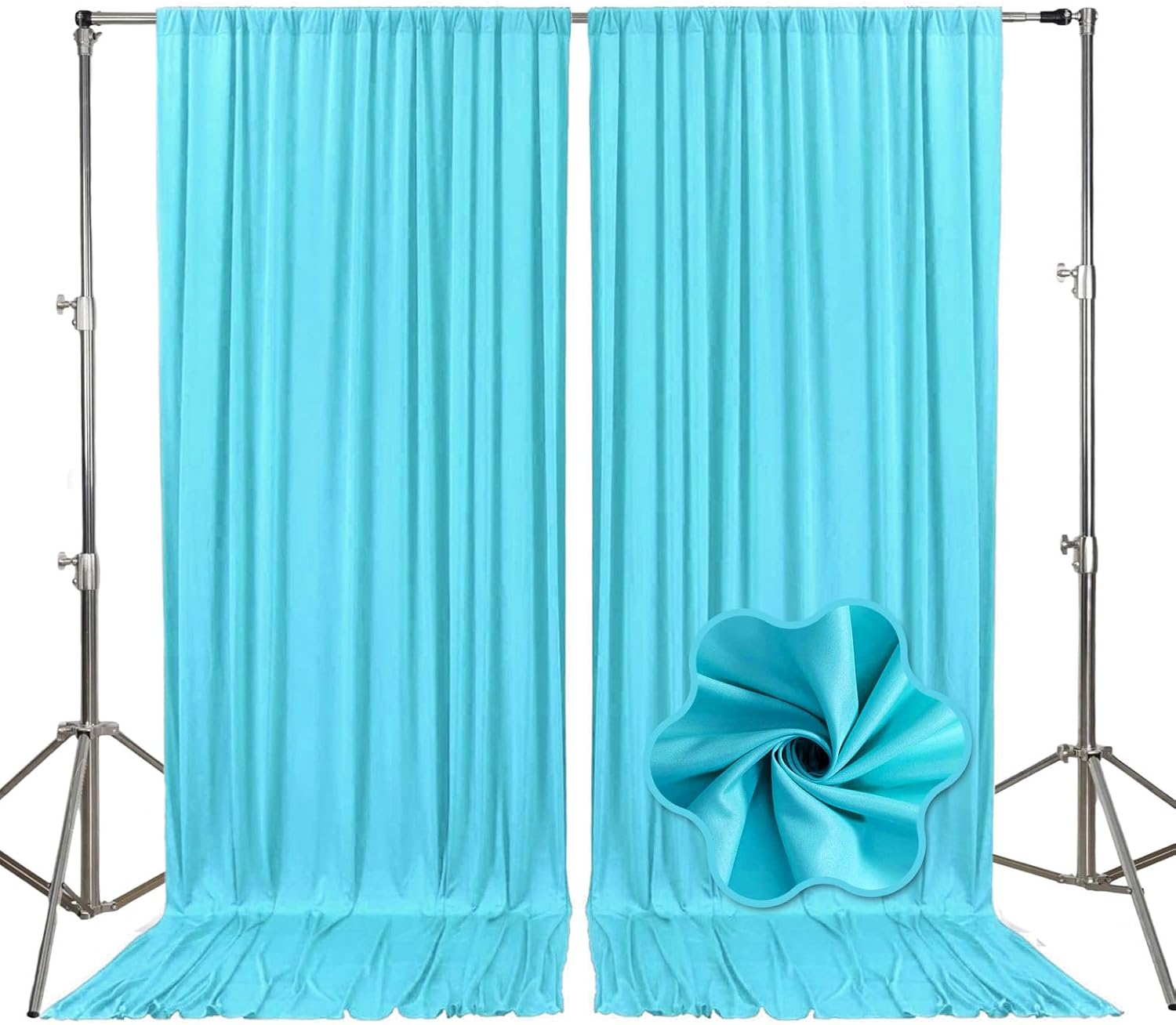 • 【Package Include】Each pack contains 2 panels of fabric shiny satin backdrop curtains. Each backdrop measures 10 feet x 10 feet (60 inches x 120 inches). There is a rod pocket designed on the top of the curtain, allowing you to easily hang it on a pipe or background stand. Tips: ONLY the backdrop curtains, no include a stand.