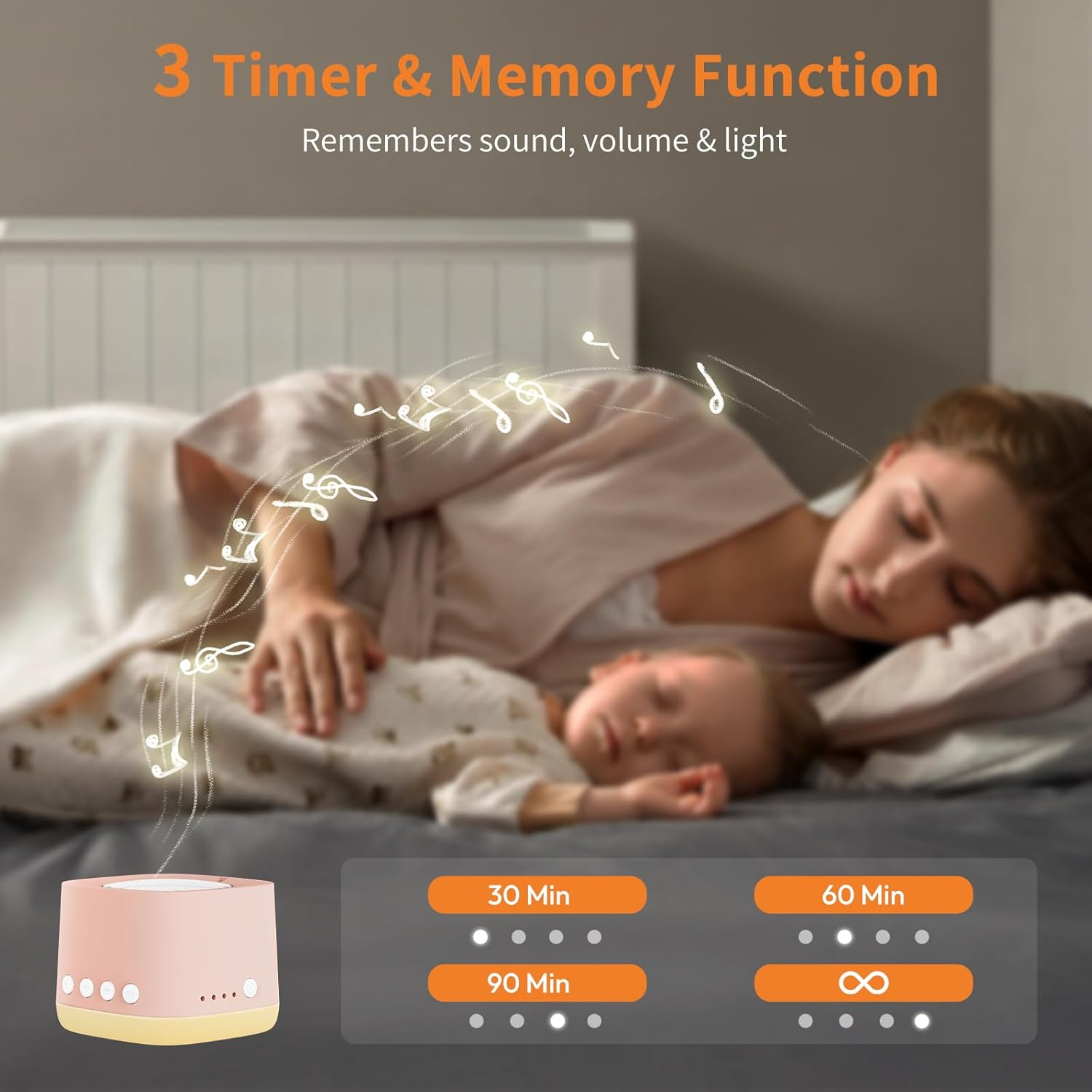 • 【Rechargeable & Long Battery Life for All Day】:Our sound machine for sleeping adults offers Type-C charging cable,charging takes only 45 Mins, it supports wireless use.Use with sound alone that lasts up to 50H, and an impressive 15-30H with both sound and light features activated. This portable sound machine travel ensures you won't be interrupted by the need for frequent recharging. Enjoy extended use throughout the day and night without interruption