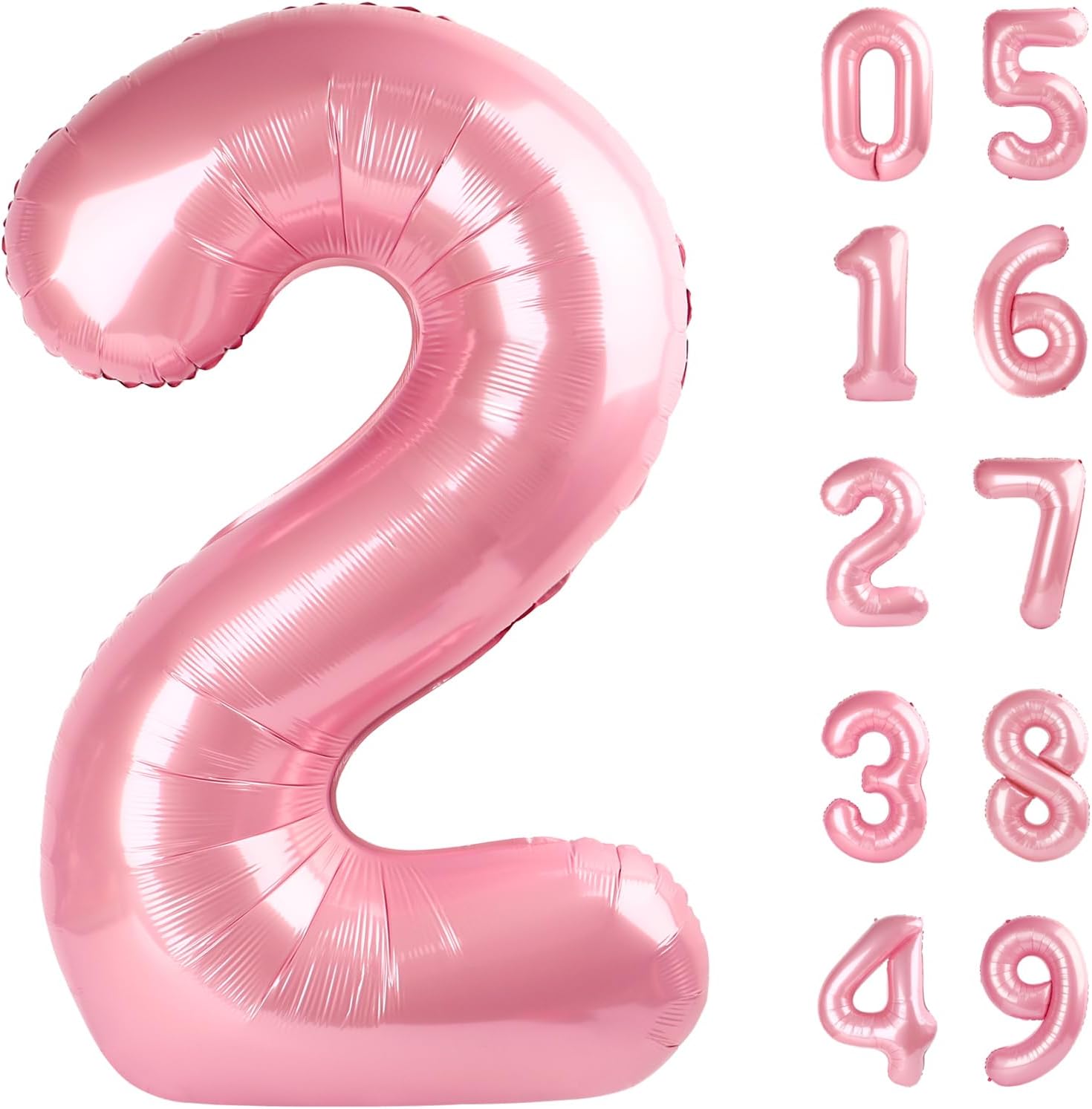 40 Inch Big Pearlescent Pink Number 2 Balloon Birthday Decoration, Number 2 Helium Balloon 12 20 22 23 24 26 28 32 42 Celebration, Boy Girl Baby Anniversary Party Graduations Supplies Decorations