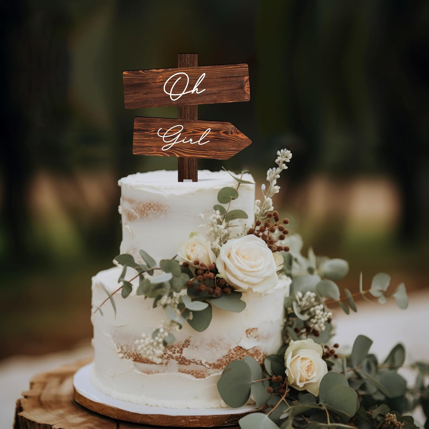 Rustic Oh Girl Cake Topper in Wood Baby Shower Gender Reveal Party Cake Decoration