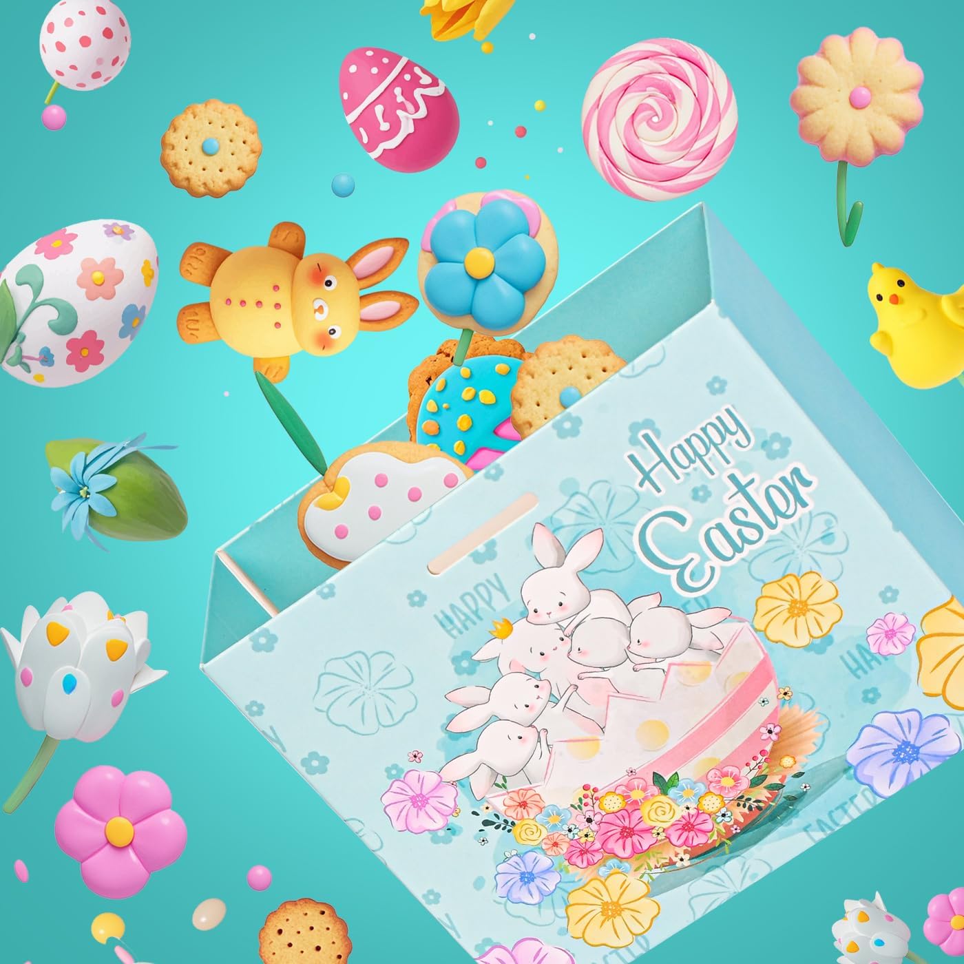 • 24 Easter Treat Bags – This set includes 24 small Easter gift bags, each measuring 4.5"H x 3.9"W x 1.8"D. Perfect for holding candies, mini toys, or small Easter eggs, these Easter favor bags are ideal for party favors, classroom treats, or baking packaging.