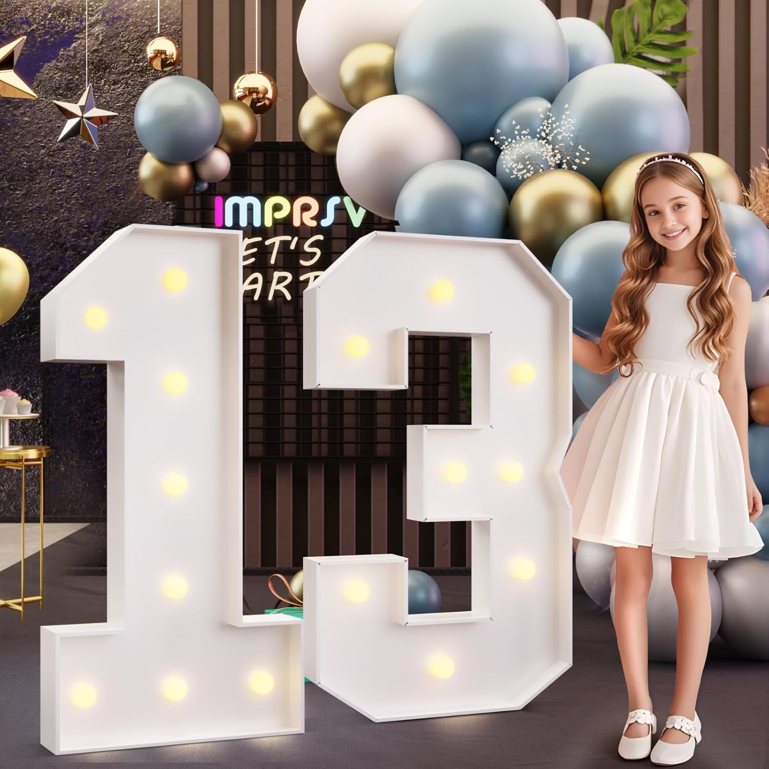 imprsv 3FT Marquee Numbers 13, Light Up Numbers for 13th Birthday Decorations Anniversary Party Decor, Number 13 Light Up Number, Pre-Cut Foam Board Kit