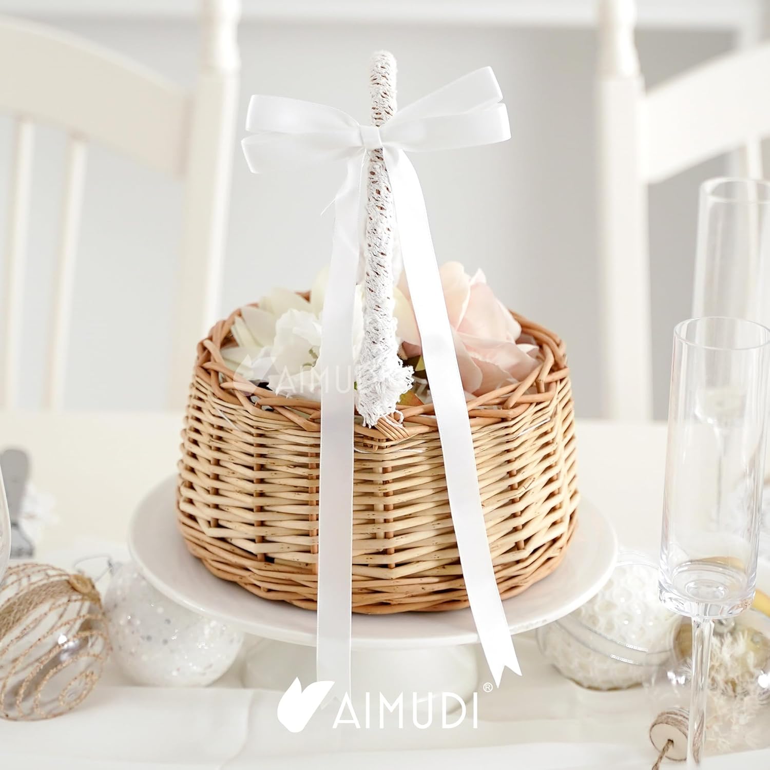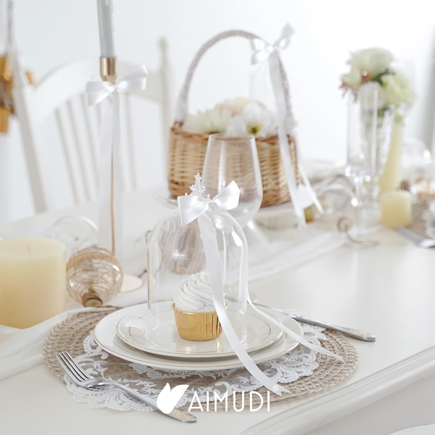 AIMUDI White Bows 5 × 10" Satin Bows for Gift Wrapping Twist Tie Bows Premade Ribbon Bows for Bouquets Invitations Baskets Crafts Wreaths Wedding Birthday Baby Shower Party Decorations, 36 PCs