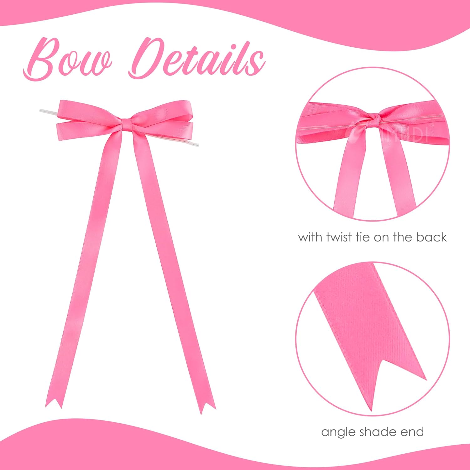 • [Size]: You will receive 36 pieces hot pink twist tie bows, each bow is 10 inches long and 5 inches wide, the end of the bow adopts a fishtail design, which is delicate and cute. Sufficient quantity allows you to have unlimited possibilities for your handicrafts.