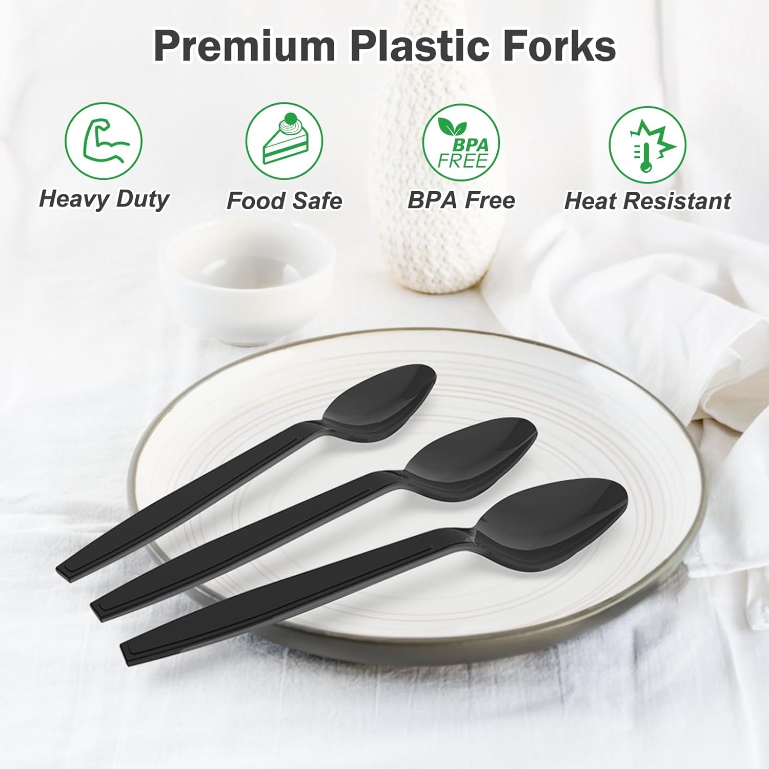 360 Count Black Plastic Spoons Disposable, BPA-Free, Heat Resistant, Solid and Durable Disposable Spoons Heavy Duty Bulk, Premium Spoons plastic disposable for Party Supply