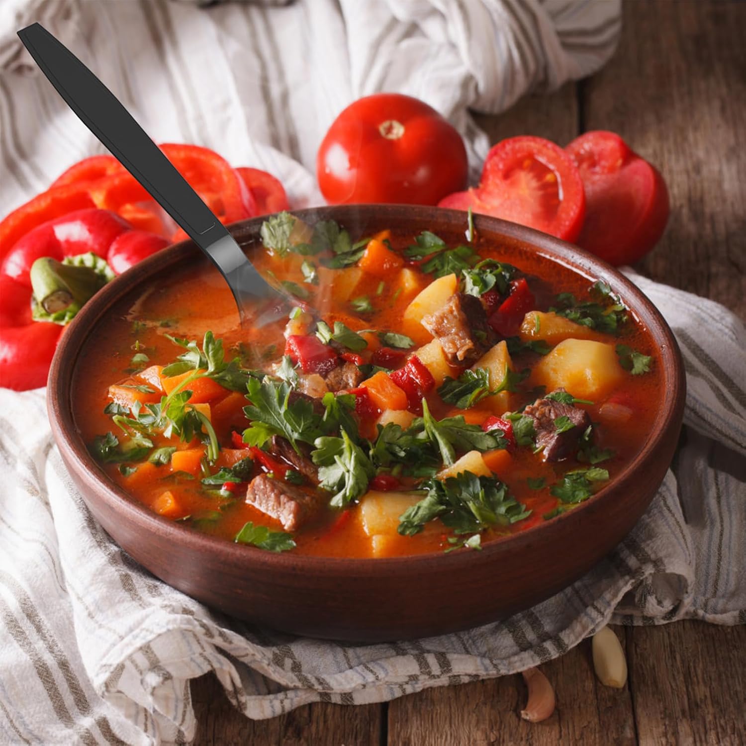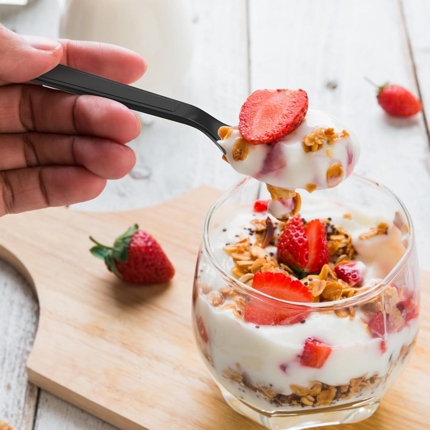 • 【360 Value Pack】: This disposable spoons bulk contains 360 count high quality black plastic spoons, perfect for your everyday use or serving a wedding, panic, party etc.