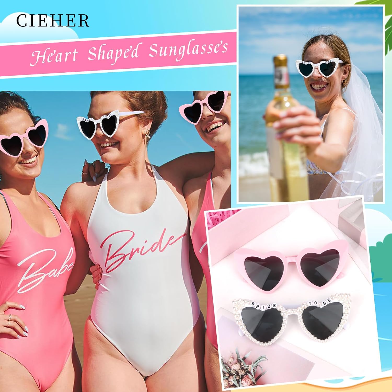 CIEHER Bachelorette Party Favors - White Black Heart Sunglasses for Bride Bridesmaid