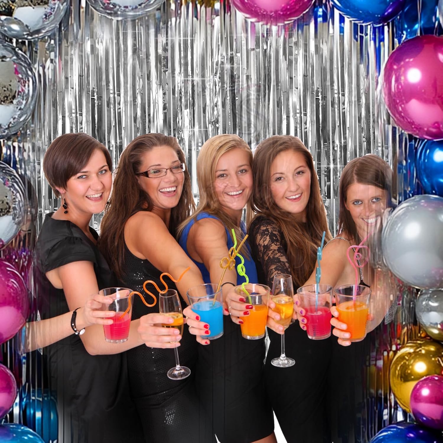 4 Packs Silver Foil Fringe Curtain, Silver Metallic Tinsel Backdrop for Birthday, Wedding, Baby Shower, Engagement, Bachelorette Party, Christmas Holiday Celebration Party Decorations Supplies