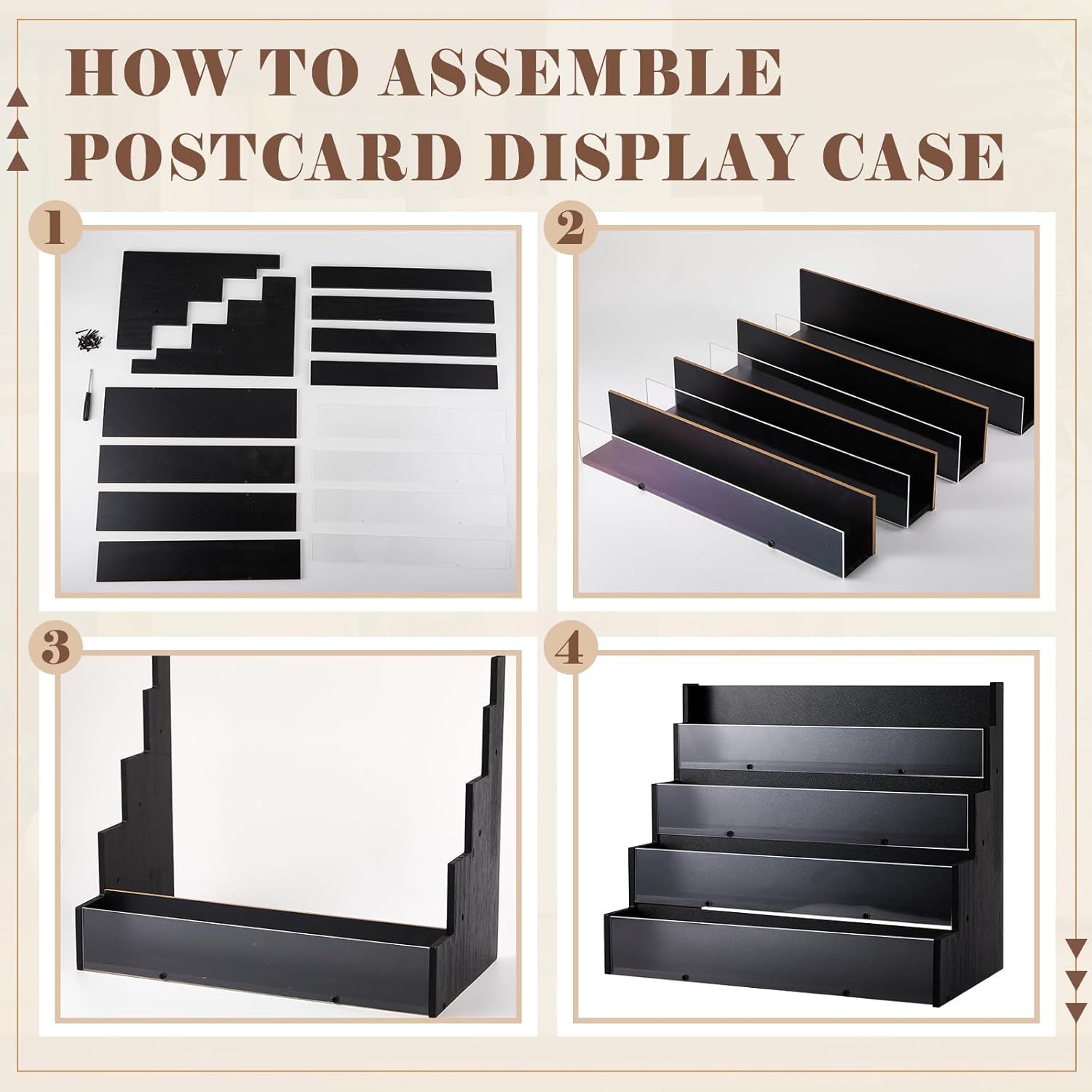 • Simple Assembly: with our greeting card holder, your assembly worries are over; Simply remove the protective acrylic surface coating and use the provided screws and instructions to set it up in just a few minutes, but still pay attention to tighten the screws to avoid affecting your experience
