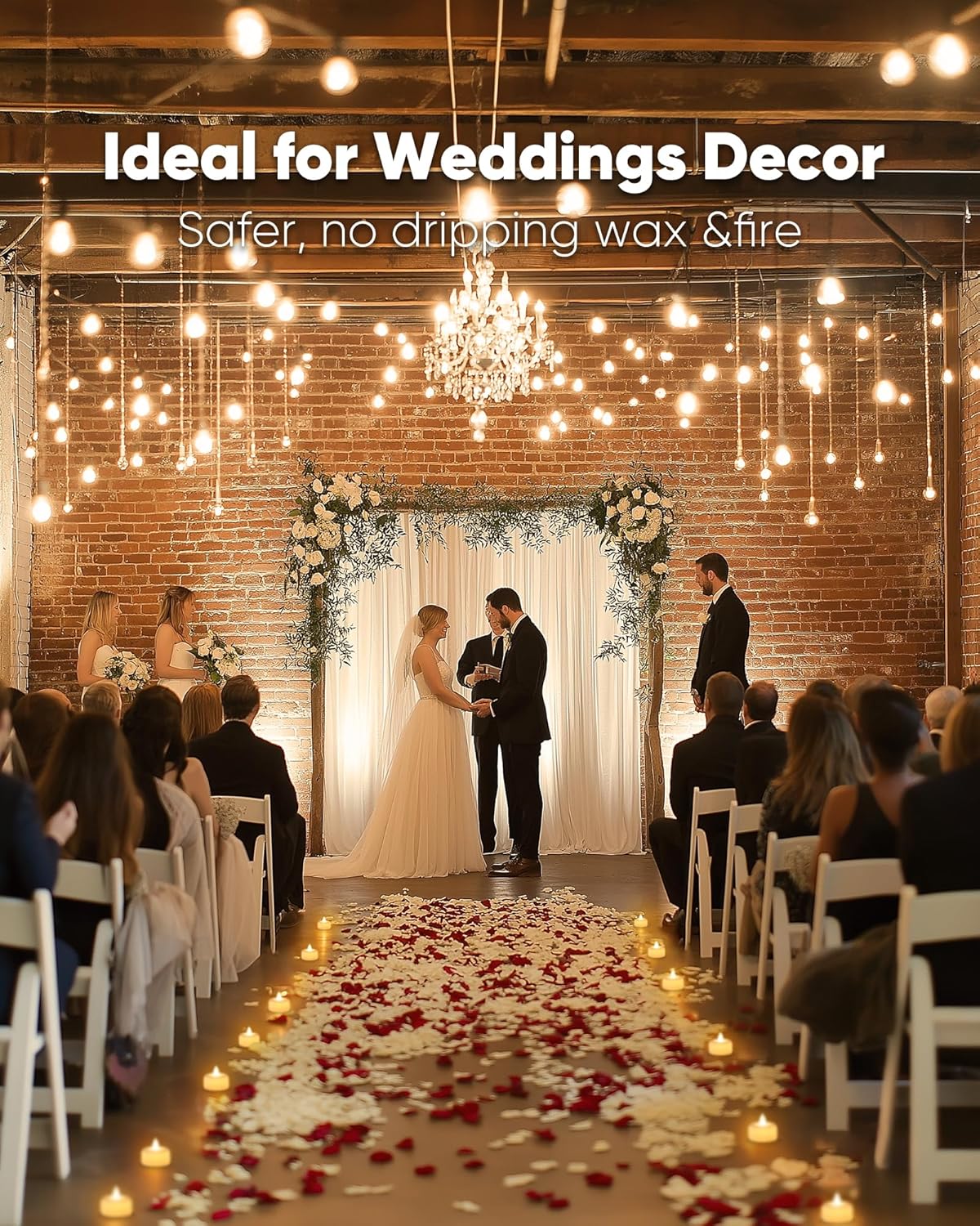 • Realistic and Bright: Mimicking the flickering of real flames, our LED flameless tea candles emit a warm glow that beautifully enhances any setting. They are perfect for weddings, proposals, Halloween, Christmas, themed parties, birthdays, and other special occasions, making them a versatile choice for your celebrations