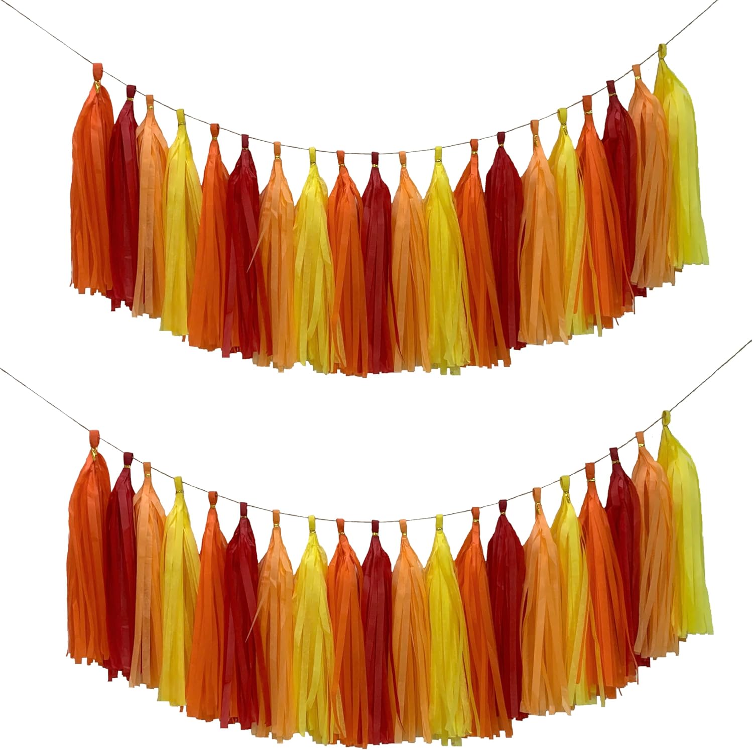Red Orange Yellow Tissue Paper Tassel Garland,Tissue Tassel Banner for Party Decorations,Pack of 20