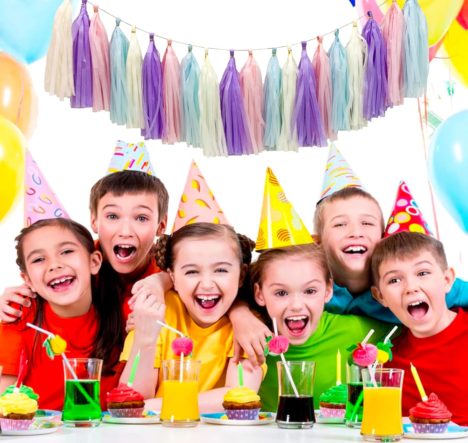 Pastel Rainbow Colorful Tissue Paper Tassel Garland,Tissue Tassel Banner for Party Decorations,Pack of 20