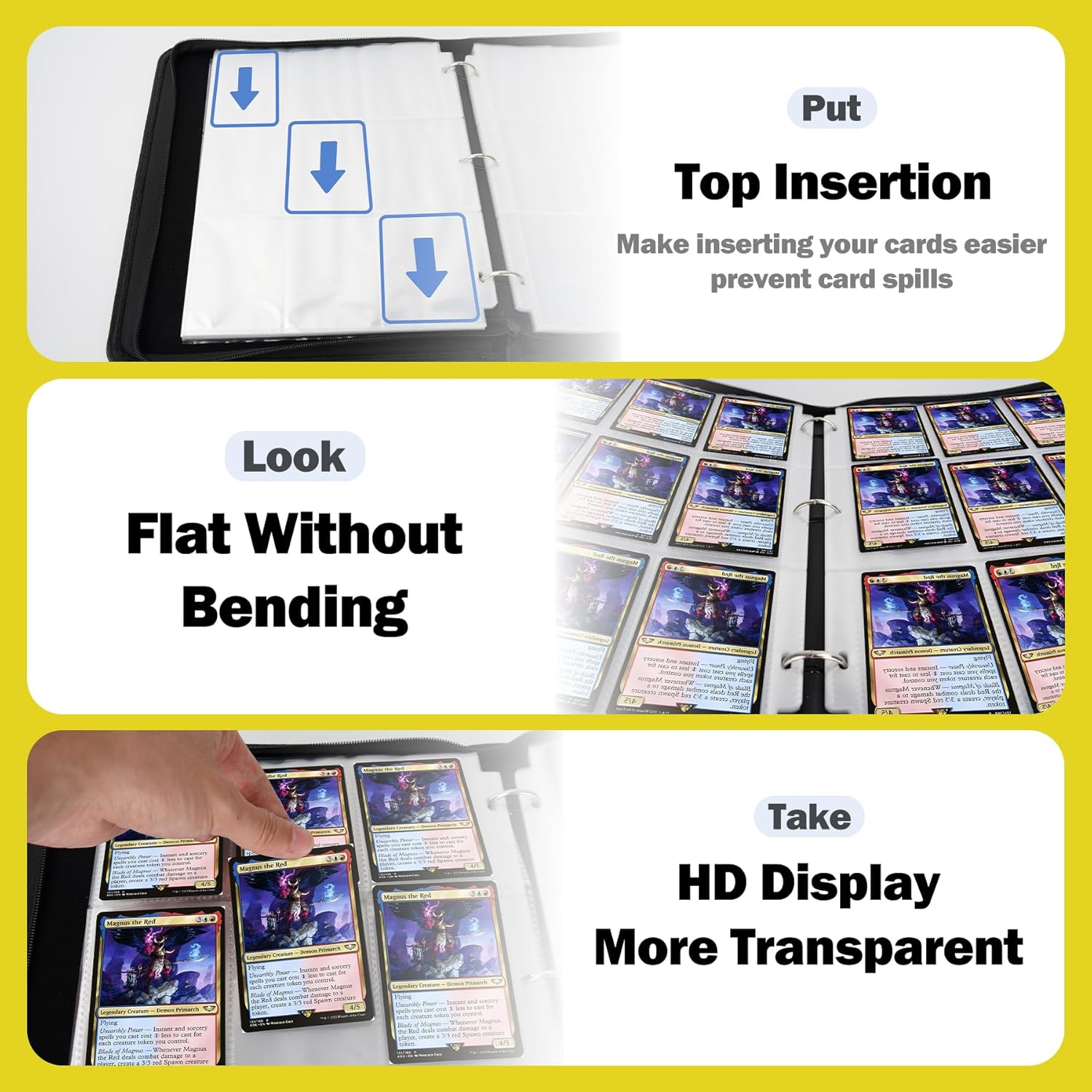 • Large Capacity:This Trading Card Binder with 50 Double Sided Pages,9 pocket per page,holds up to 900 cards.Provides plenty of space to keep all your cards organized,not disorganized