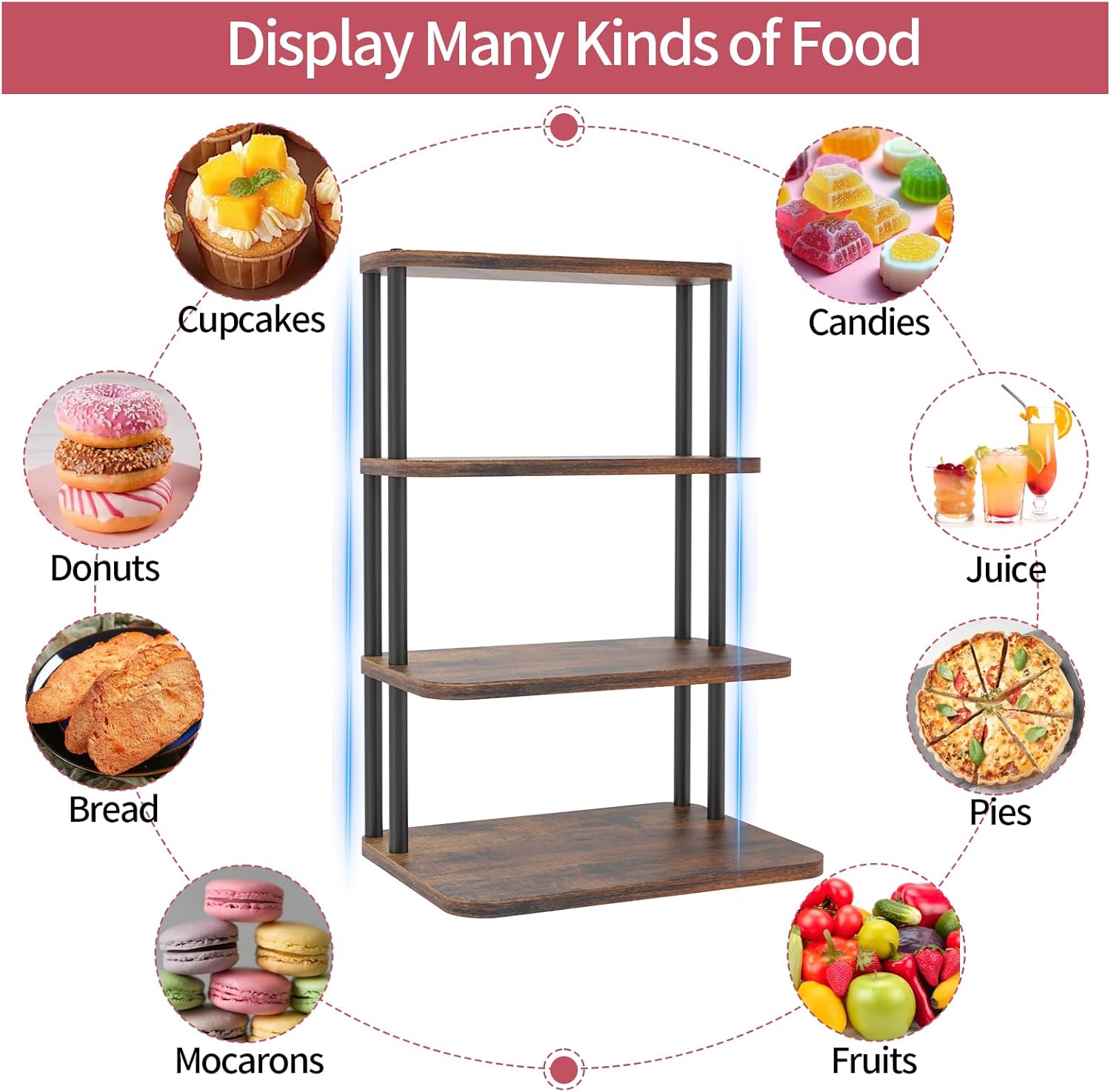 • 4 Tier Cupcake Stand: This cupcake tower features a rustic style design, The artfully curved edges and warm wood tones create a charming display for your cupcakes or cake, glowing under party lights. Transform your dessert table into a perfect showcase.