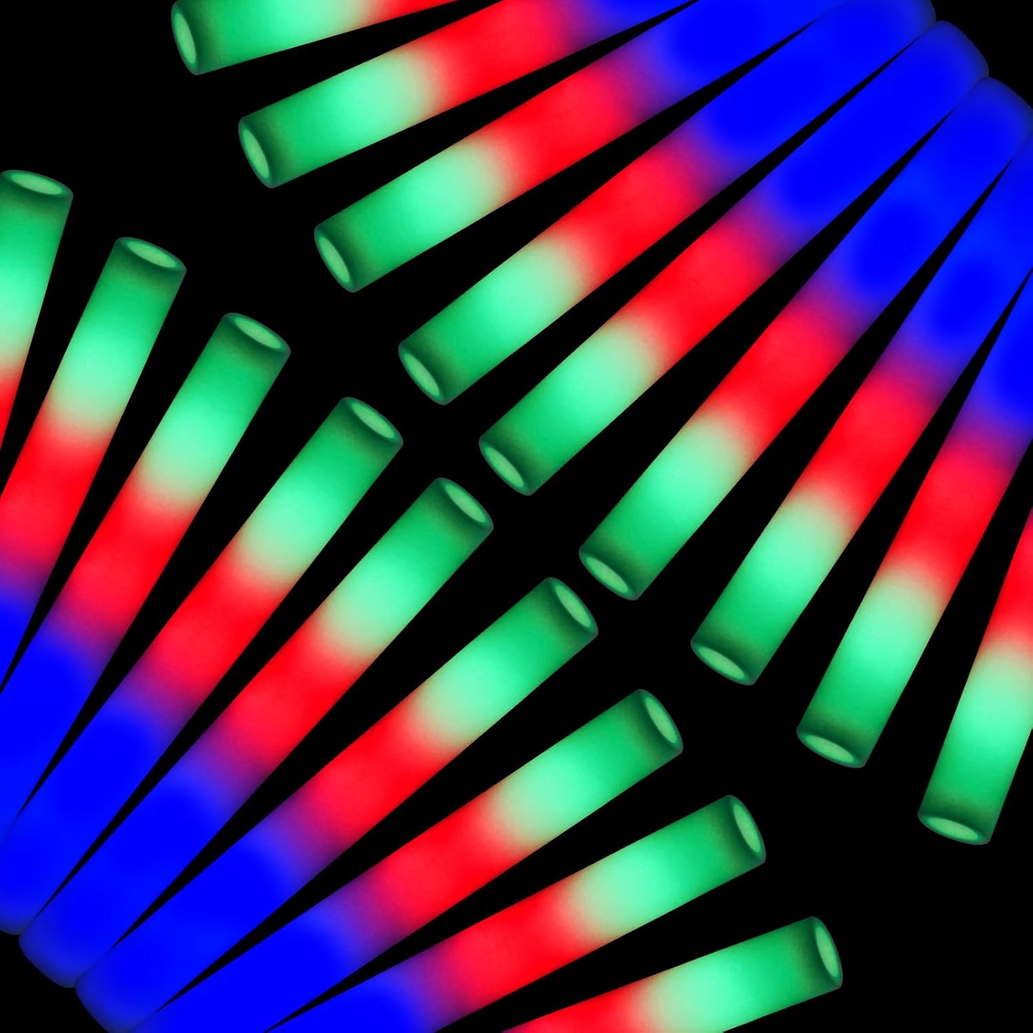 • 12-Pack Multicolor LED Foam Glow Sticks – Bright & Vibrant Party Lights: Each 16 x 1.6-inch glow stick features vibrant red, green, and blue LED lights, creating a stunning neon effect that catches everyone’s attention. Perfect for concerts, raves, weddings, birthdays, festivals, and night events, these light-up wands add energy and fun to any celebration!