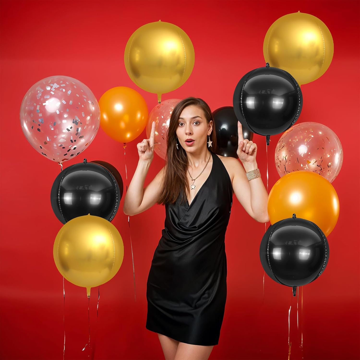 6Pcs Black Gold Round Foil Balloons,Giant 4D Round Ball Balloons,22 Inch Metallic Black Gold Balloon for Birthday Wedding Graduation Prom Party Decorations