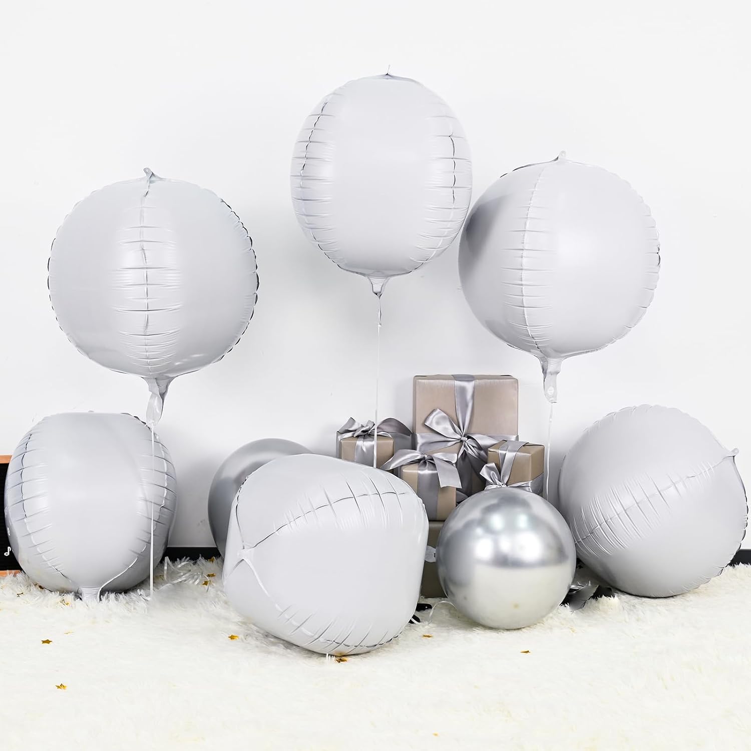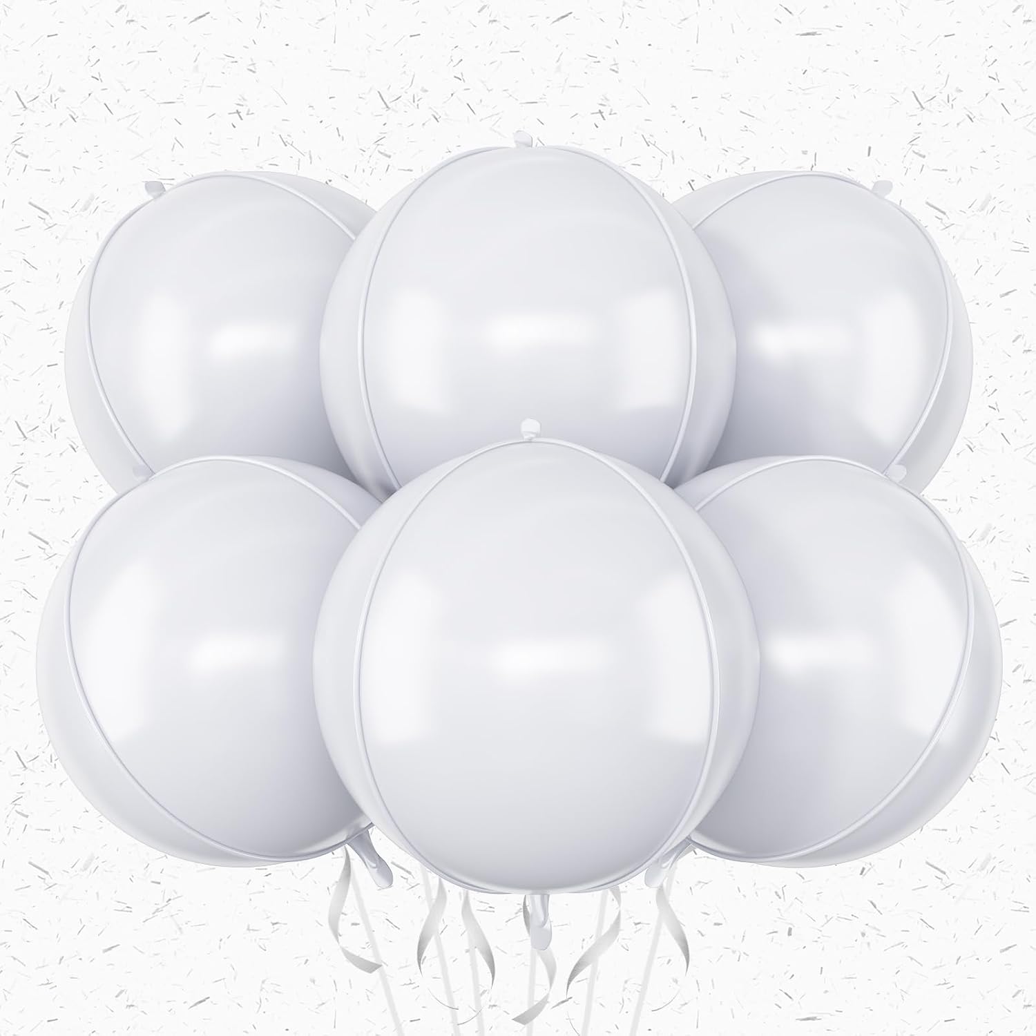 6Pcs White Round Foil Balloons,Giant 4D Round Ball Balloons,22 Inch Metallic White Balloon for Birthday Wedding Graduation Prom Party Decorations
