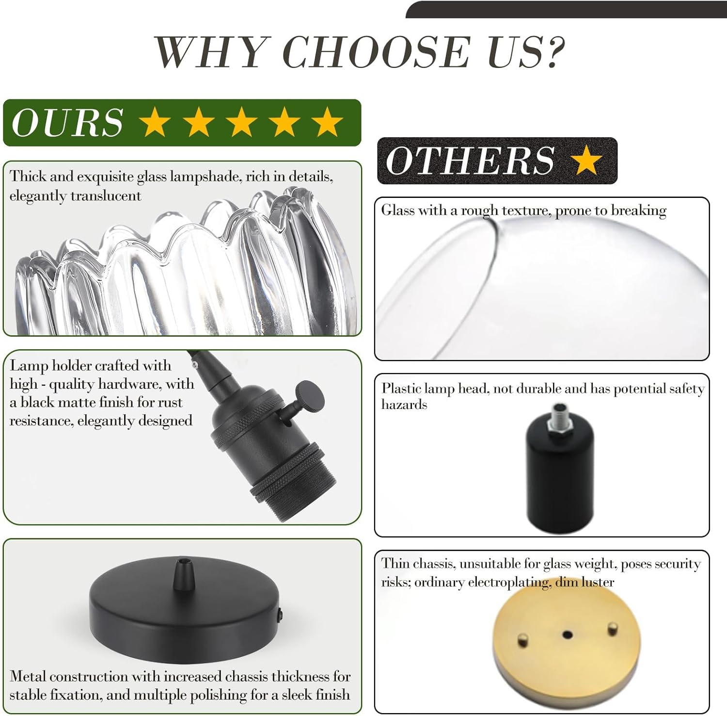 • 【Exquisite Tulip】The clear tulip - shaped lampshade, made from highly transparent glass, emits a romantic and noble charm. It acts as a beautiful pendant light shade, casting an elegant glow that can transform any space, whether it's a kitchen or a living room