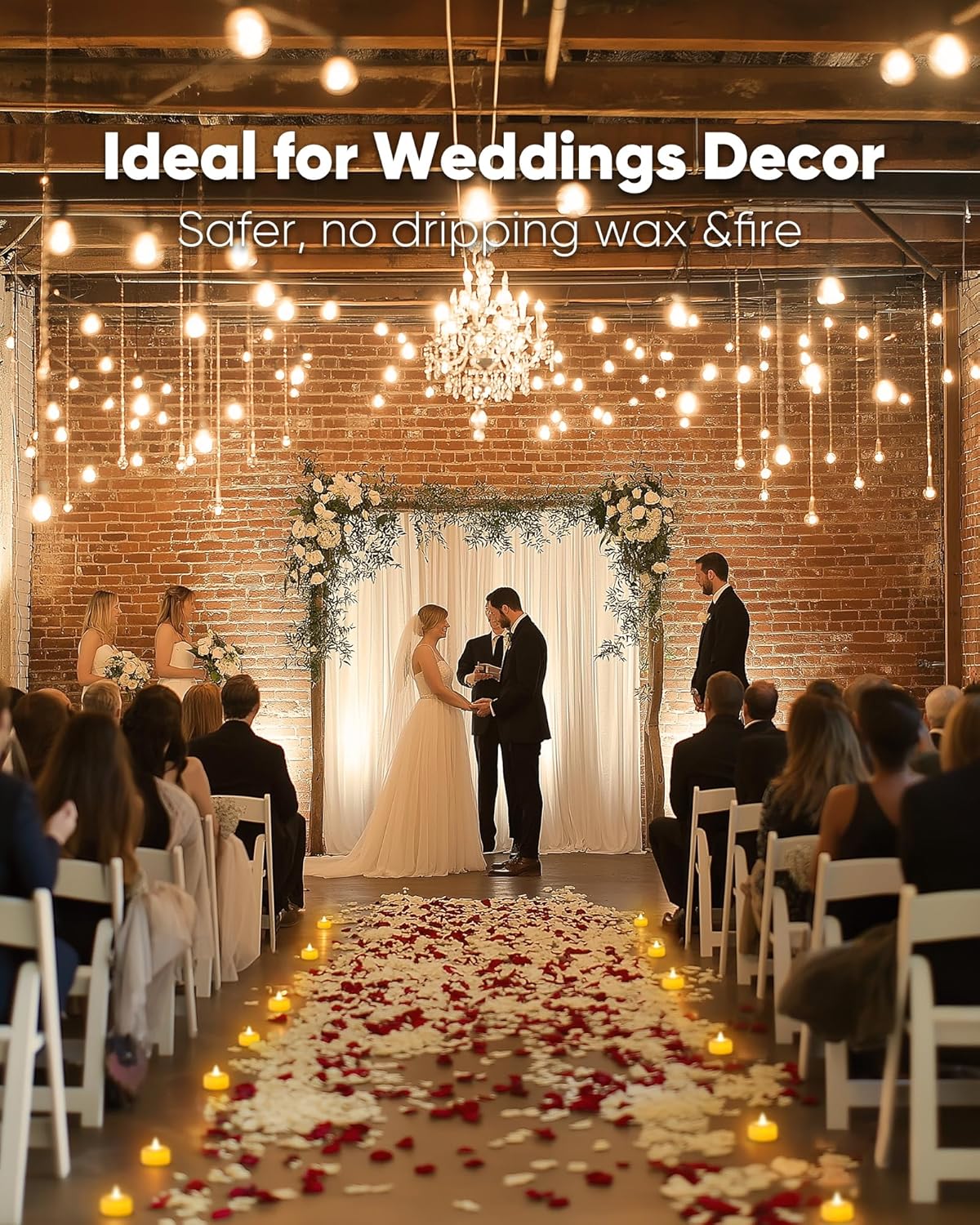 • Realistic and Bright: Mimicking the flicker of real flames, our 24 pack LED flameless tea lights emit a warm glow, perfect for enhancing the ambiance of your dining table or any room. They are ideal for weddings, proposals, Halloween, Christmas, themed parties, birthdays, and other special occasions