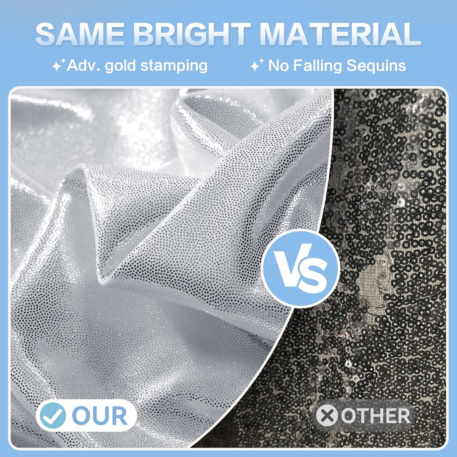 • Premium Craftsmanship: Crafted with advanced hot stamping technology, our soft polyester backdrop features a glittery, luxurious metallic finish with ultra-low light permeability. It ensures a professional, elegant look for photography and events, combining durability with glamour