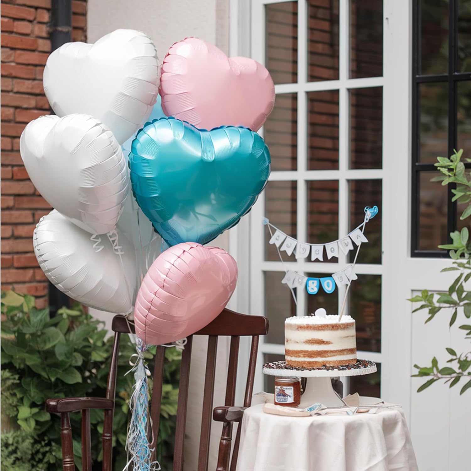 • Charming Pink Blue Heart Balloons: Elevate your celebration with our set of 12 heart-shaped nude white blue balloons, each measuring 18 inches. Accompanied by a ribbon, these balloons are ideal for creating a festive and loving atmosphere at any special event.