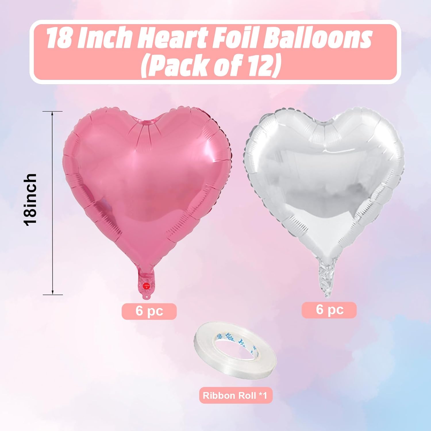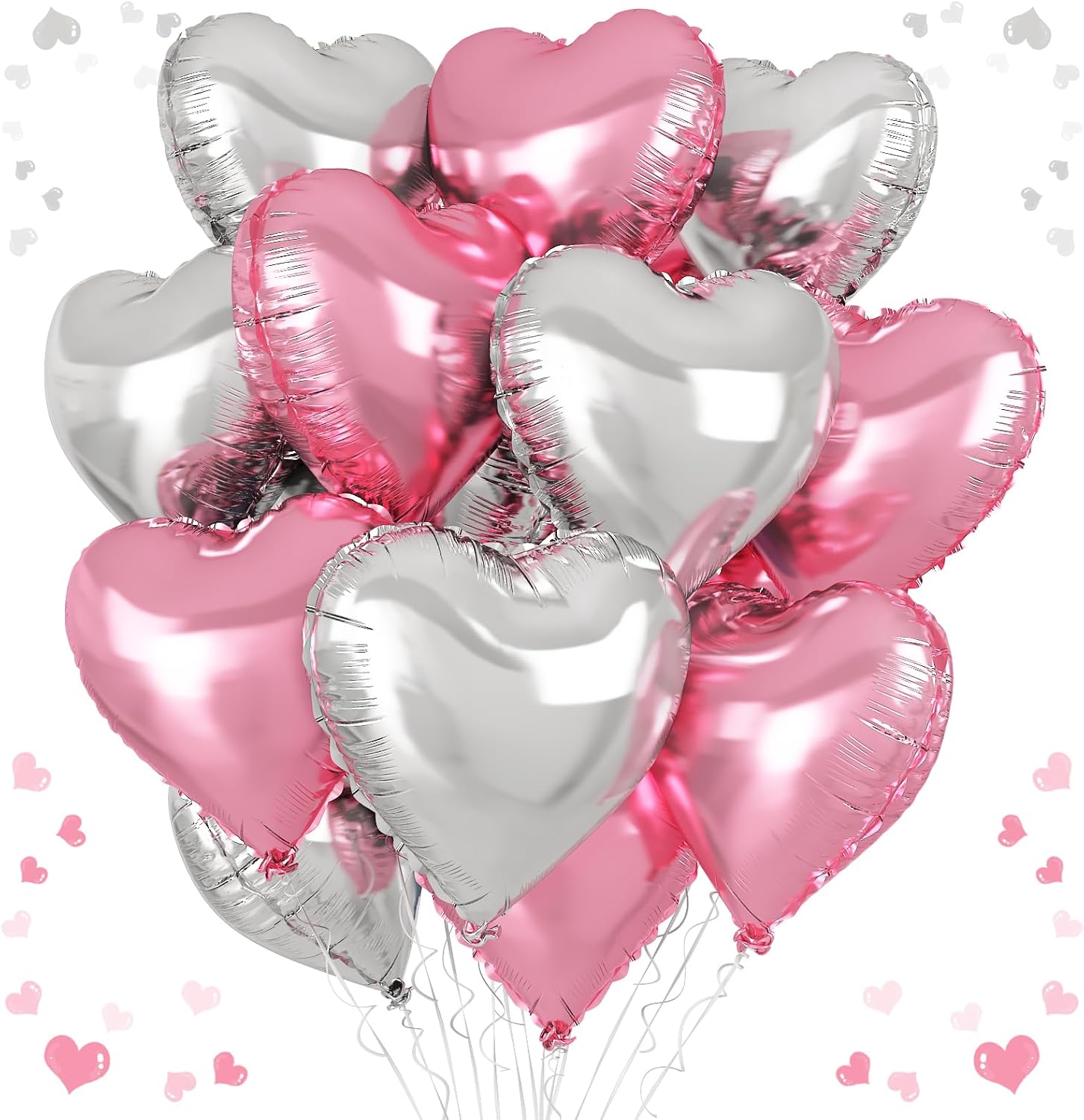 • Versatile Decorative Accent: Perfect for a variety of occasions, including birthdays, baby showers, Valentine's Day, weddings, and anniversaries. These pink and silver heart balloons are suitable for creating stunning balloon bouquets, enhancing party venues, or serving as vibrant photo backdrops.