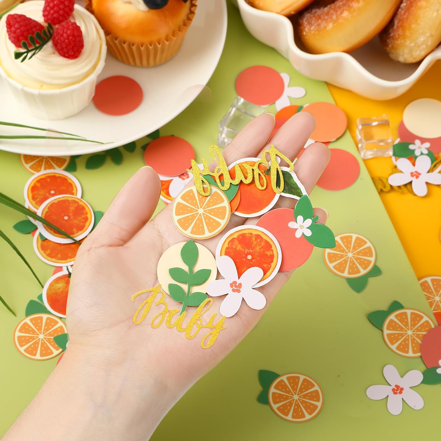 • Package: You will receive 500pcs little cutie baby shower decorations, including different styles such as round confetti, orange baby confetti and green eucalyptus, to meet the decoration needs of your baby shower birthday party, so that every corner of the party will be covered with vivid colors and add infinite joy to the baby's celebration