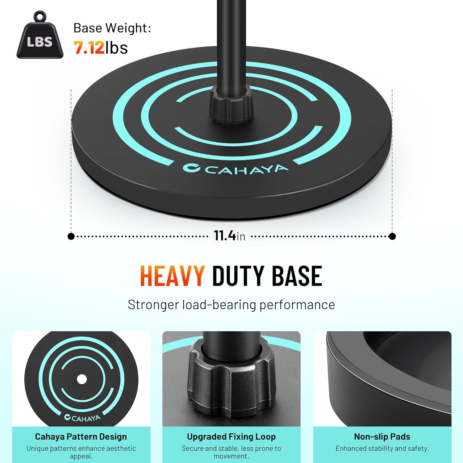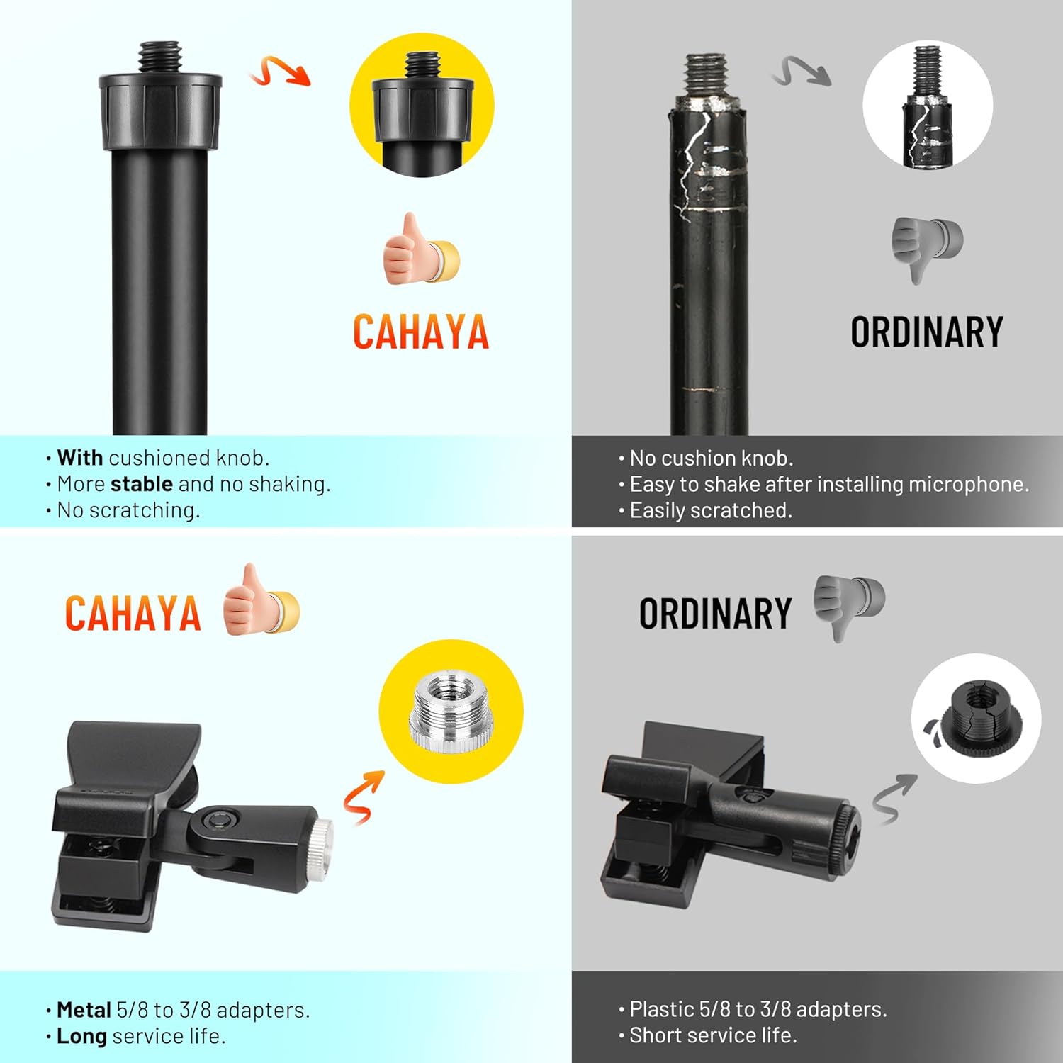 • 【Upgraded Weighted Solid Base】: Compared with tripod stands, CAHAYA mic stand features a metal round weighted base (7.12lbs, 11.4in diameter). The base of the floor mic stand is flat, wide and heavy enough to provide strong stability and accommodate your heaviest microphones. The base also features the CAHAYA logo for a stylish and professional look.