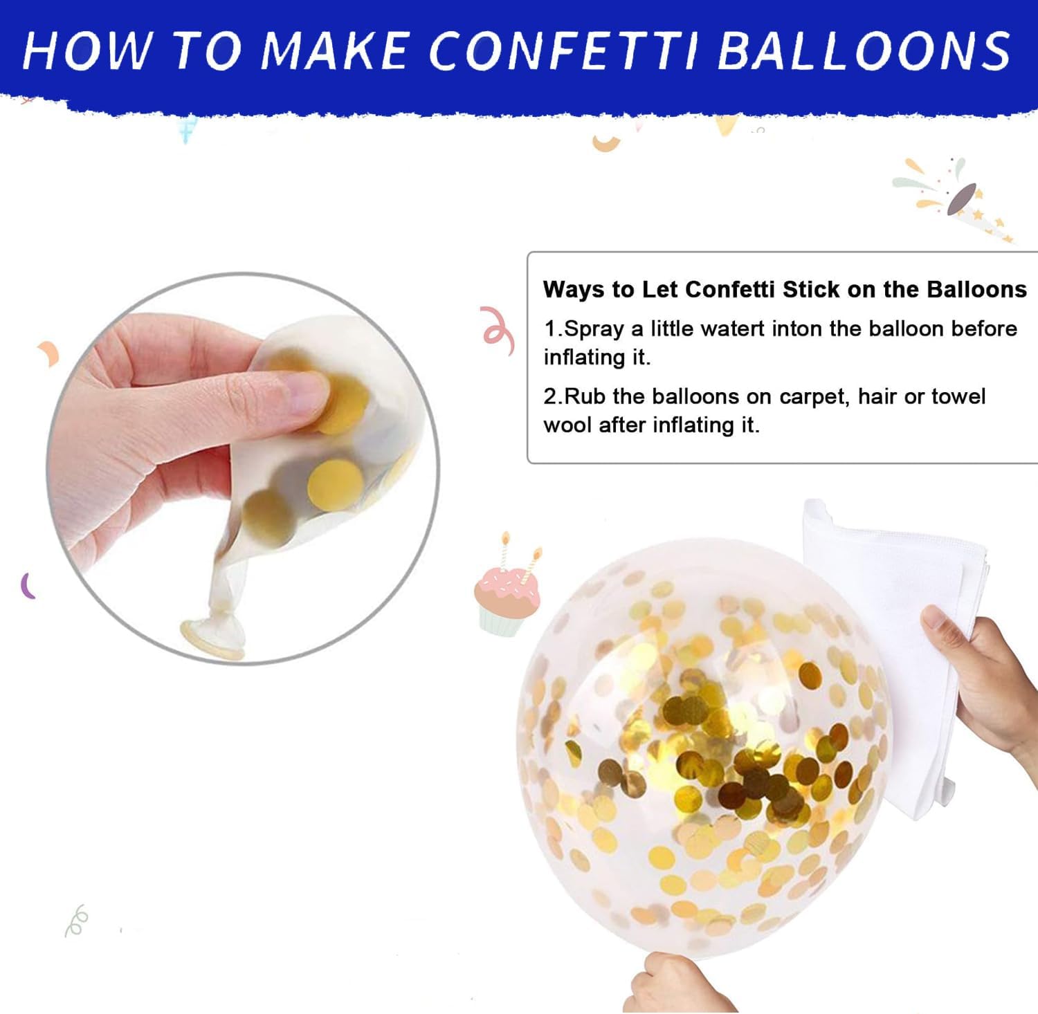 • 【Tips For Confetti Balloons】Please use a dry towel, carpet or hair to gently wipe the balloon to obtain static electricity, and then slowly shake the balloon to make the confetti stick to the side of the balloon. After the party, you can pierce the balloon and make the confetti fall, adding a lot of fun to the party!