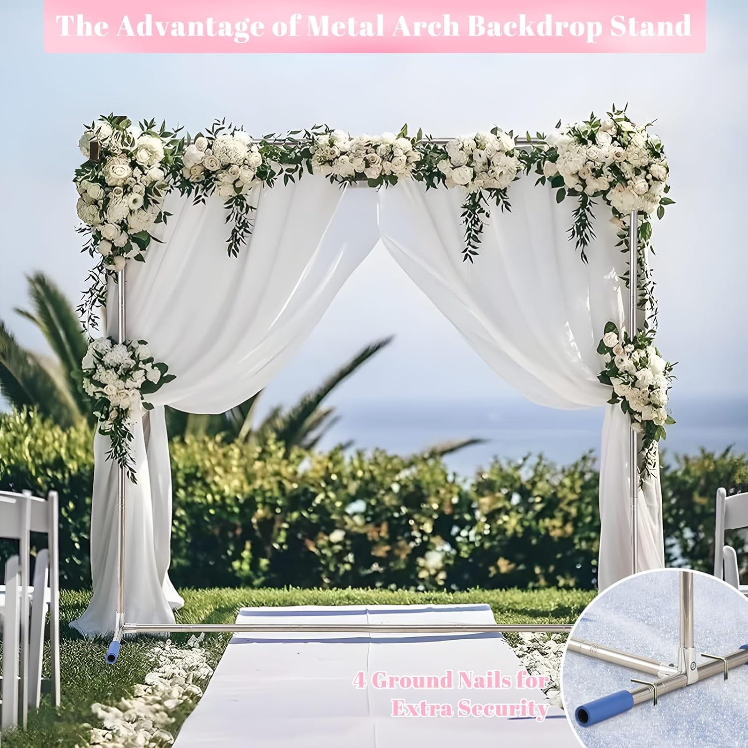 • Classic and Elegant-Classic square shape,elegant and sturdy,stable and not easy to overturn.This arched backdrop frame comes with 4 extra ground spikes which provide a firm and balanced support,better resistance to wind and rain