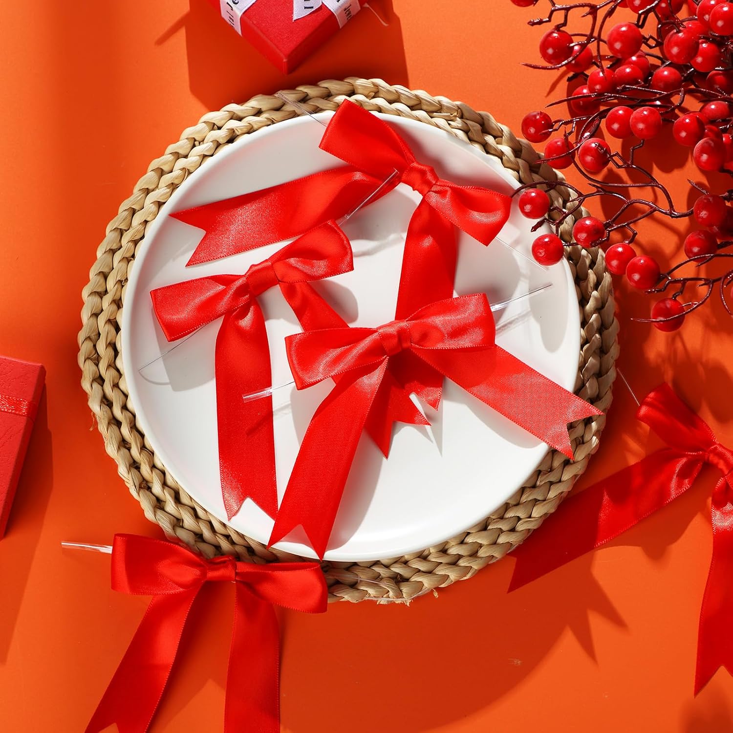 • Red Twist Tie Bows: our package includes 24 red ribbon bows and 24 twist ties; This set will easily meet your various needs for decoration or DIY projects; The dimensions of our bow are approximately 3.5 x 5 inches/ 9 x 13 cm, with a ribbon width of 1 inches/ 2.5 cm; The decent size is suitable for decorating gifts, packages, and other items; You can have fun with family and friend making eye catching decorative pieces by DIY