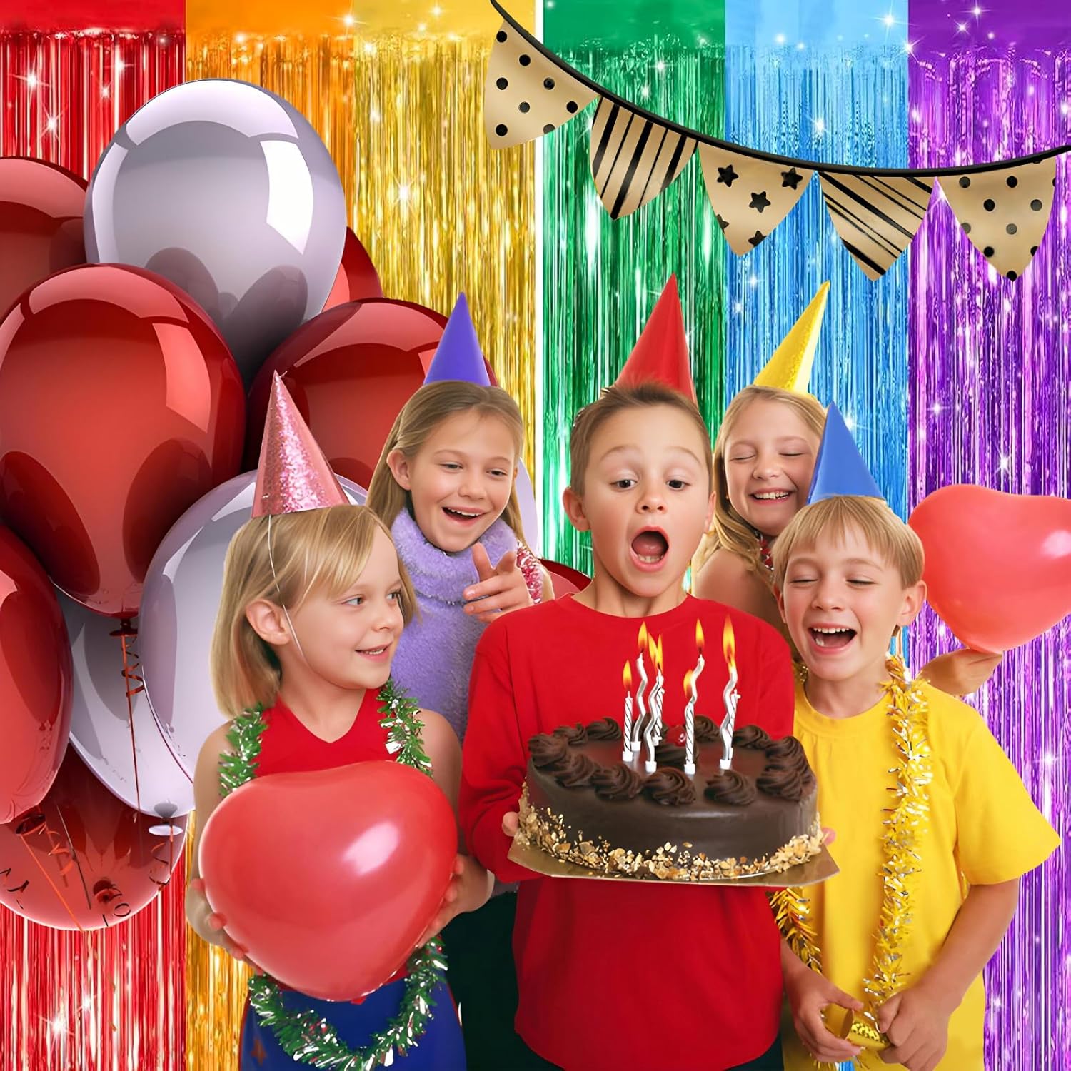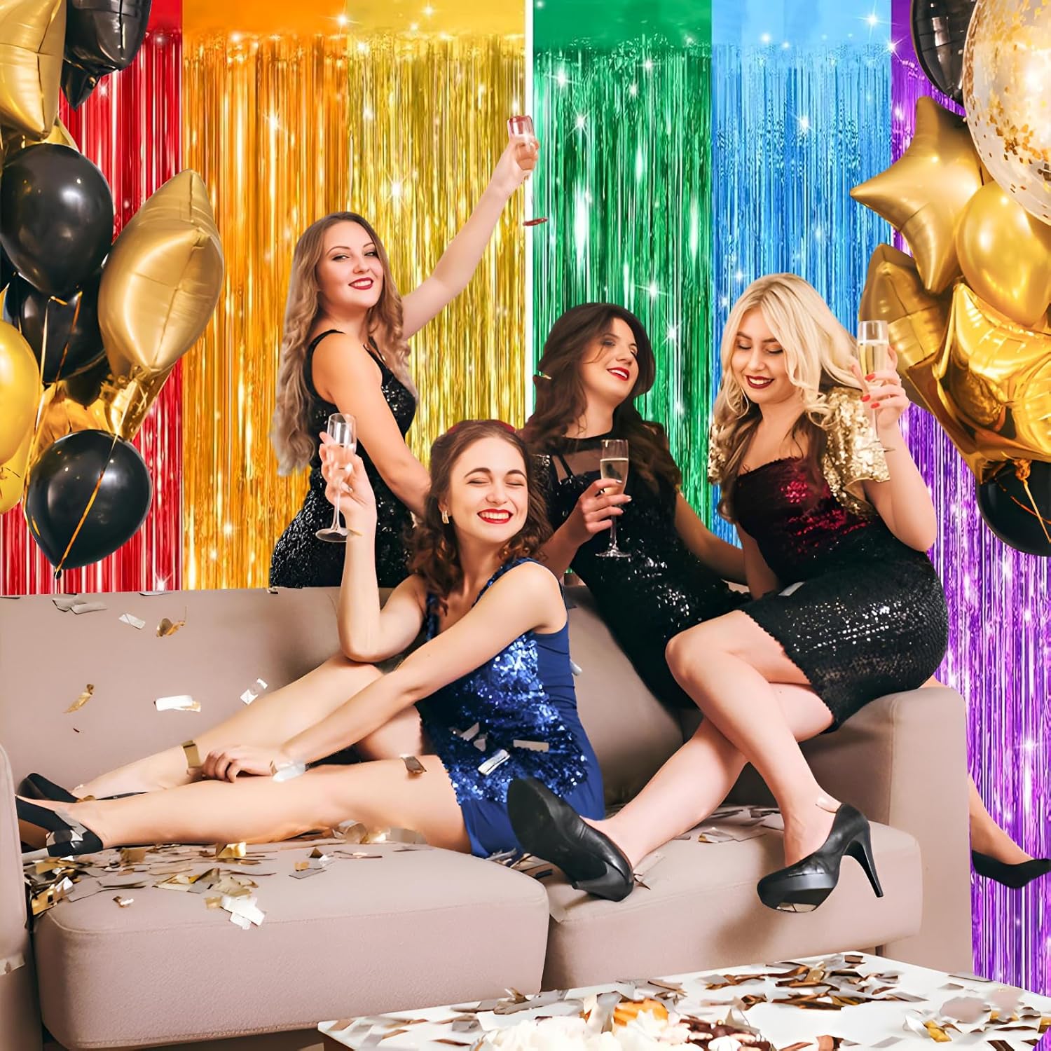 • 2 Pack foil fringe tinsel backdrops: each measuring a whopping 3.3 ft x 8.3 ft.Long enough for indoor or outdoor parties. Also can be cut in suitable length for your birthdays Party decorations These backdrops are perfect for creating stunning party decorations, event backdrops, and photo booths that will leave your guests in awe.
