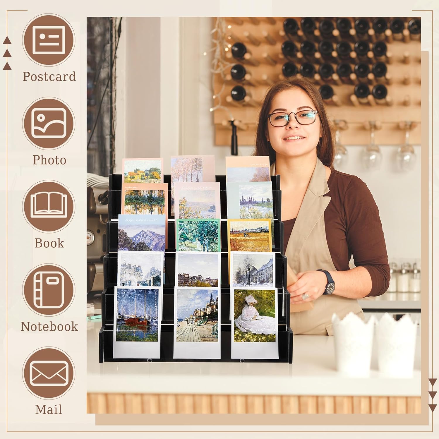 • Impressive Dimensions: our greeting card display stand boasts an overall size of about 14.9 x 10.2 x 14.2 inches, providing an ideal fit on your counter's pace; Each of its 5 tiers are about 2.8 inches high and 2 inches wide