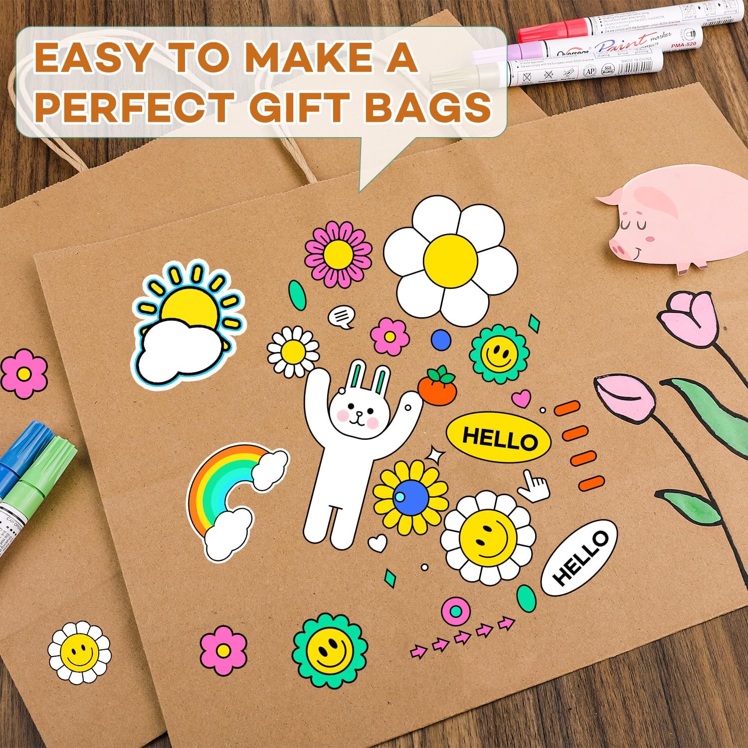 • DIY PAPER GIFT BAGS - The large gift bags bulk have smooth surface absorb ink well that is perfect for craft and DIY ideas. You may create and decorate your own art with drawing, coloring, stamping on the plain large bags as you want.
