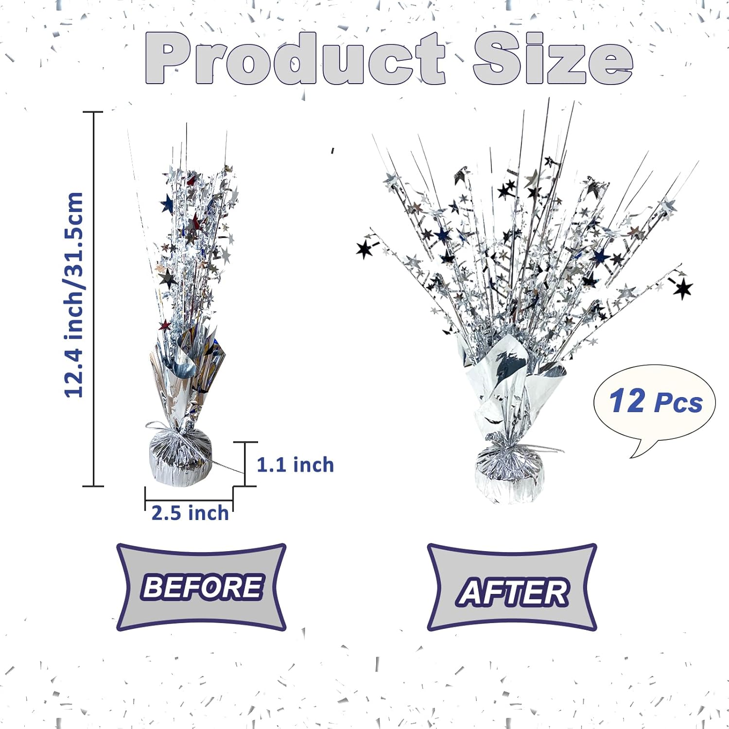 • Proper Size: Metallic plastic star centerpieces is 12.4" height, and the firm base is 2.5" in the diameter. Party decorations for tables can be placed in the middle of the table to attract people's attention without taking up too much space, adorable and glitter to add party event