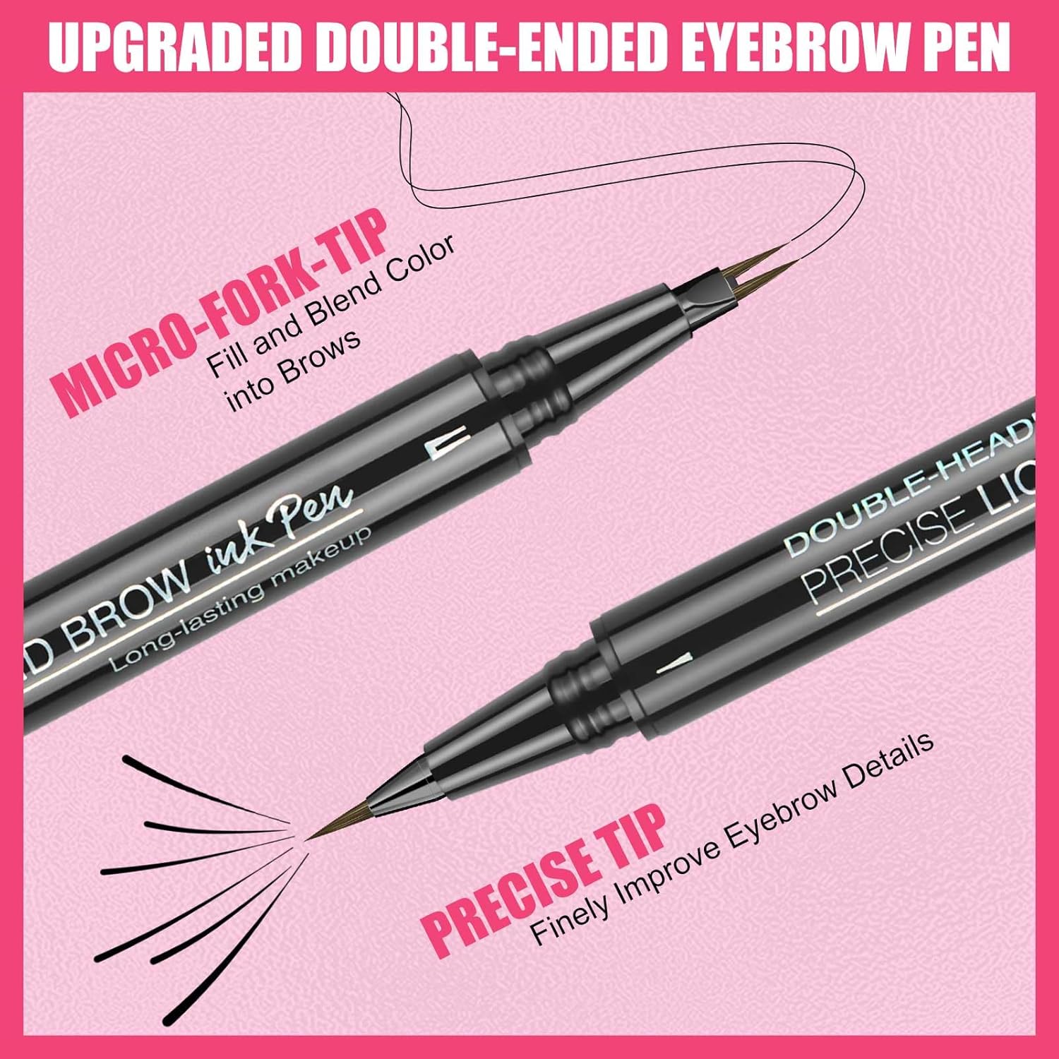 • EASY TO USE - This 2-in-1 dark brown eyebrow pencil allows for easy natural and full eyebrows and saves your time. Unique tips simplify the process of outlining and filling eyebrows, making it easy for even beginners to create professional-level eyebrow shapes. Use the micro fork tip to gently fill the eyebrows, draw the outline of the eyebrows, and finally use the other end to draw the tail of the eyebrows and perfect the details of the eyebrows to get vivid and natural eyebrows.
