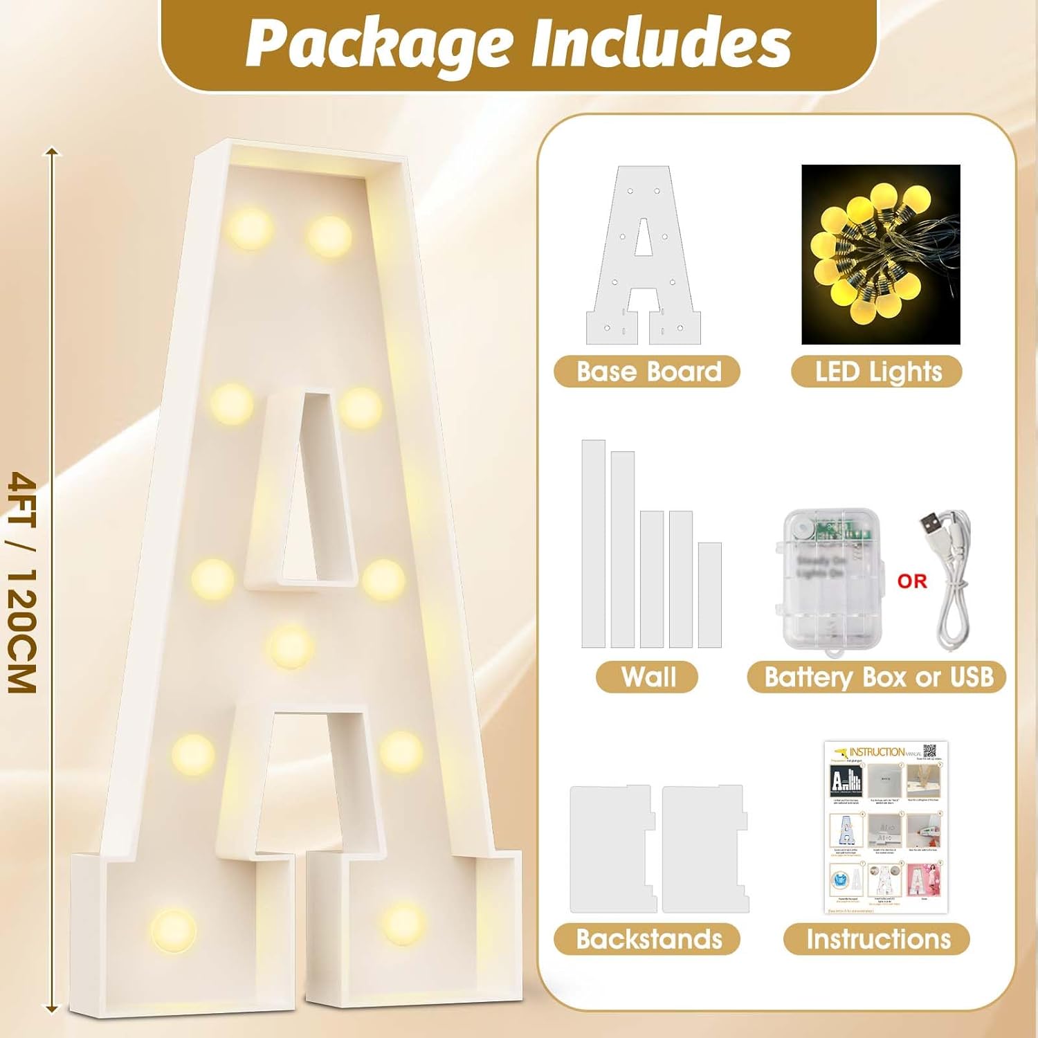 • 【After-sales service】The 4ft light up letter package includes Pre-cut foam boards, light bulbs, corresponding LED string lights, and instructions.If you find any problems, please contact us, such as broken foam board, broken bulb,we will definitely provide you with a satisfactory solution.