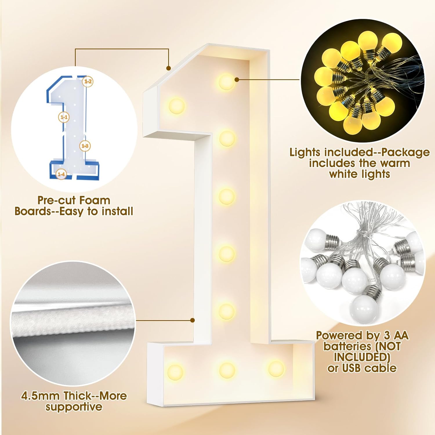 • 【Assembly Required】Each marquee light up letters is made of precisely pre-cut foam board, comes with the same model of light string and LED bulb, and a user-friendly instruction manual. According to our installation manual, ① Fold the side panels along the cutting line and stick them to the bottom panel with hot melt glue according to the corresponding number. ② Screw the bulb onto the single board, and then install the LED light string into the bulb. (Note: Glue gun and battery not included)