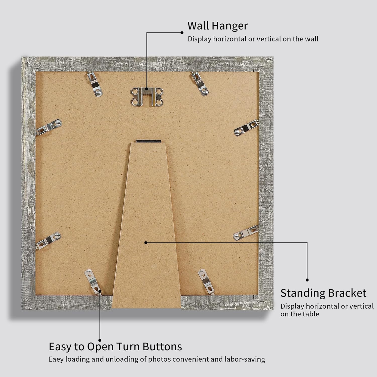 • Multi Frames Collage Set: Includes 4 frames in the same size. Perfectly fits 10x10 inch pictures with mat or 12x12 inch without mat. The frame opening display size is 0.5 inches smaller than the photo size for secure mounting.