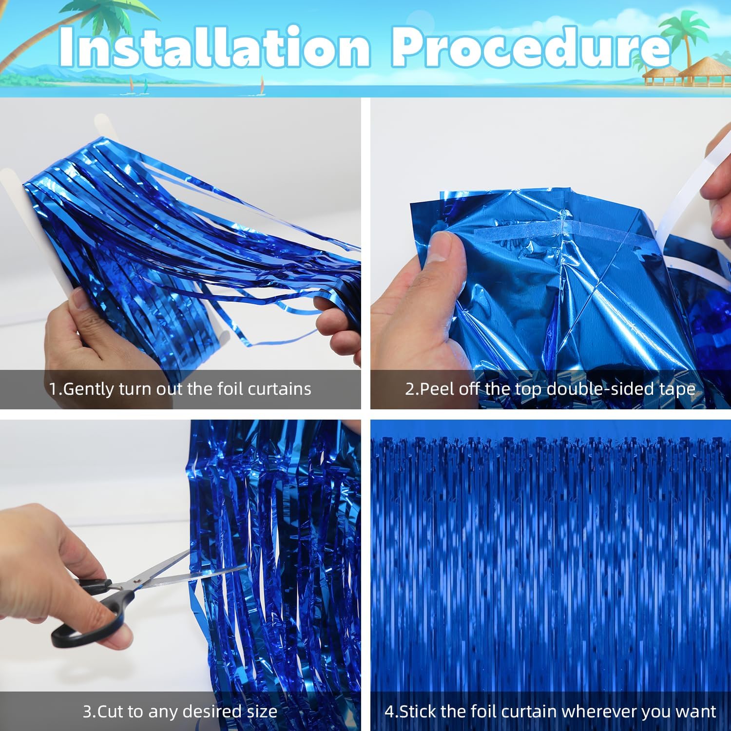 • Easy To Assemble: The royal blue party decorations come with double-sided adhesive tape, easy to use, just tear off the back of the adhesive tape, then paste this blue streamers backdrop curtains on the top of wall, window, table, or as door fringe decoration to light up your ocean door decorations. Also you can hang these blue party favors to decorate as navy, door decorations hanging, blue door streamers, ocean decorations or as waterfall party decorations. It will create your party memorable.