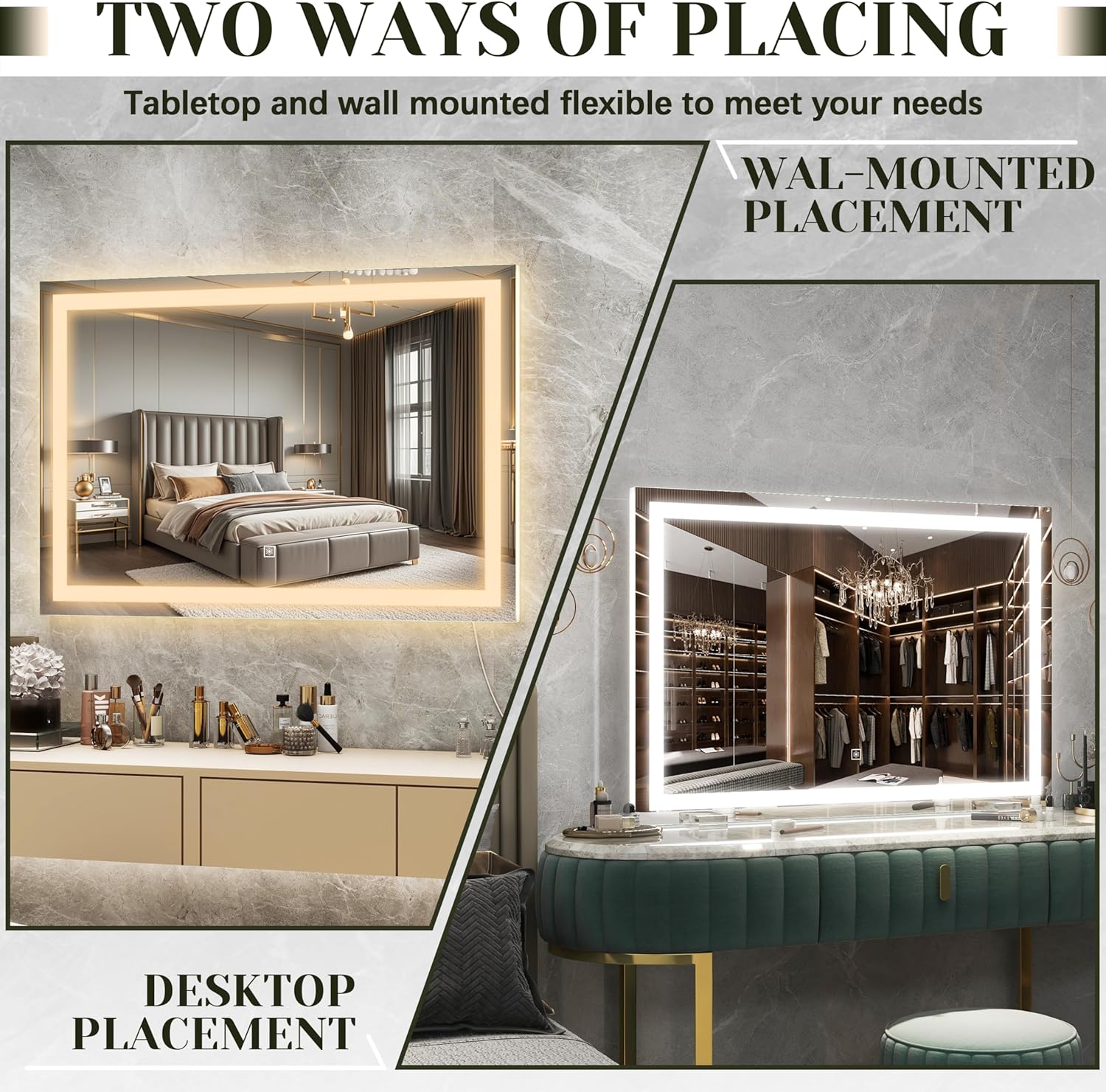 • 【Extra Large & Space - Saving Design】 View full-body outfits & makeup details in one glance with our 30% larger viewing area than standard mirrors. Our 32" x 22" LED vanity mirror also offers a space - saving dual - installation option. The lighted mirror comes with a detachable base for desktop use or wall mounting.