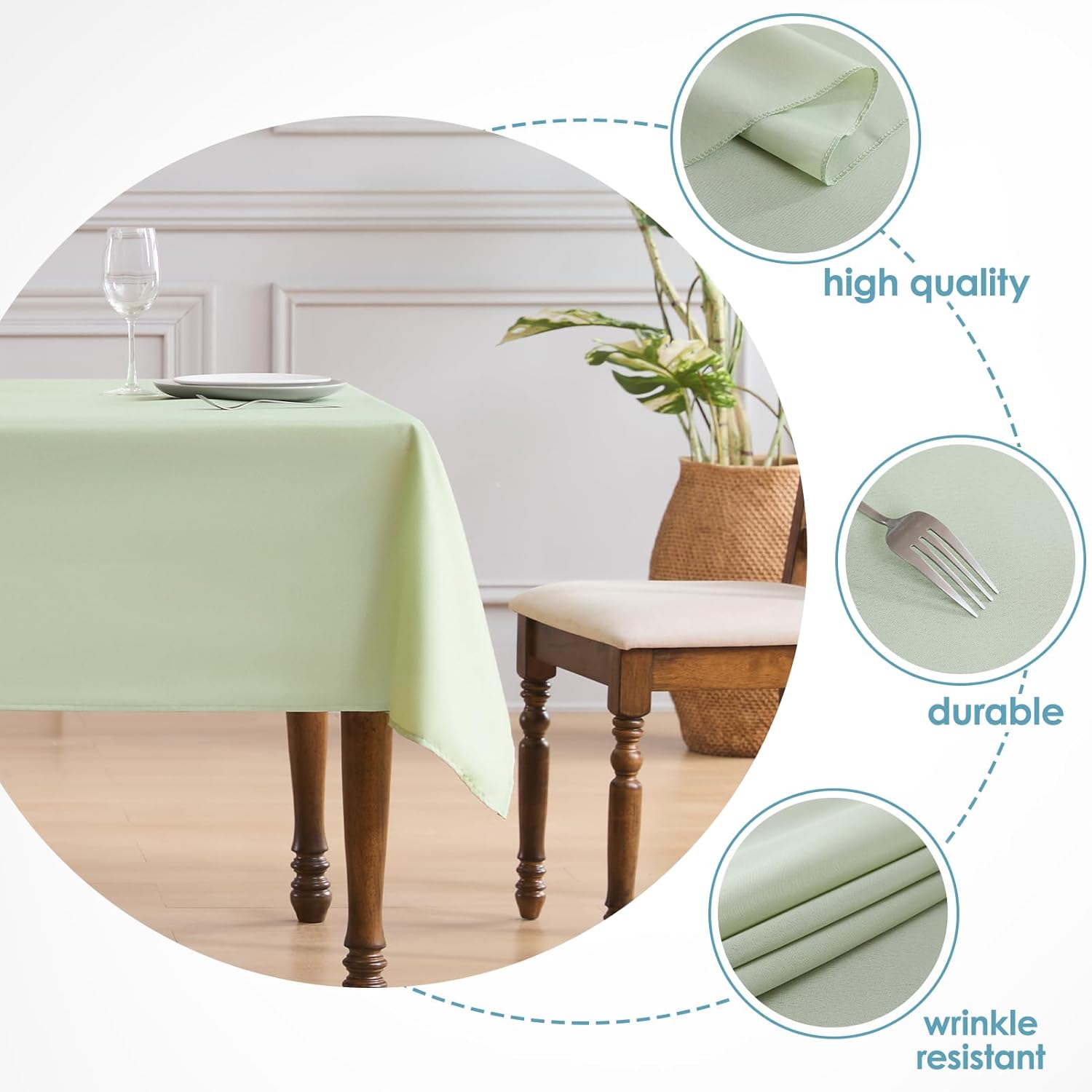 • Durable and Easy to Care: High quality polyester material makes the sagegreen tablecloth is durable, stains will not invade, and does not deform or shrink, while eliminating the problem of hand washing, machine wash and dry in cold water
