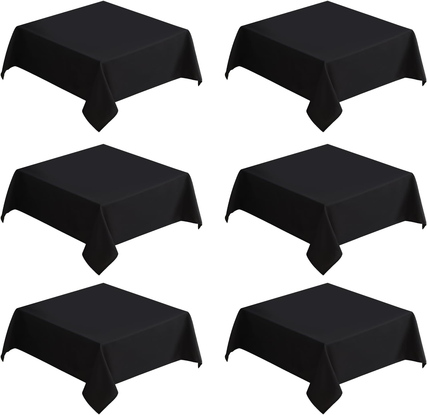 VidaFete Square Tablecloth 6 Pack 52 x 52 Inch Tablecloths Stain Wrinkle Resistant Polyester Dining Table Cover for Kitchen Dinning Party Wedding Rectangular Tabletop Buffet Decoration(Black)